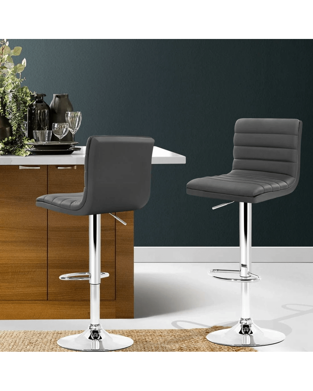 Sold by Aisle SixArtiss 2x Bar Stools Padded Leather Gas Lift - Grey