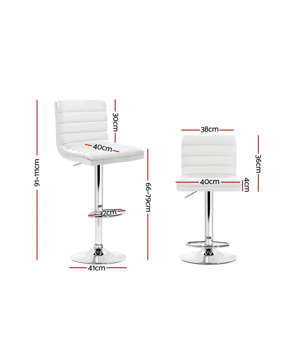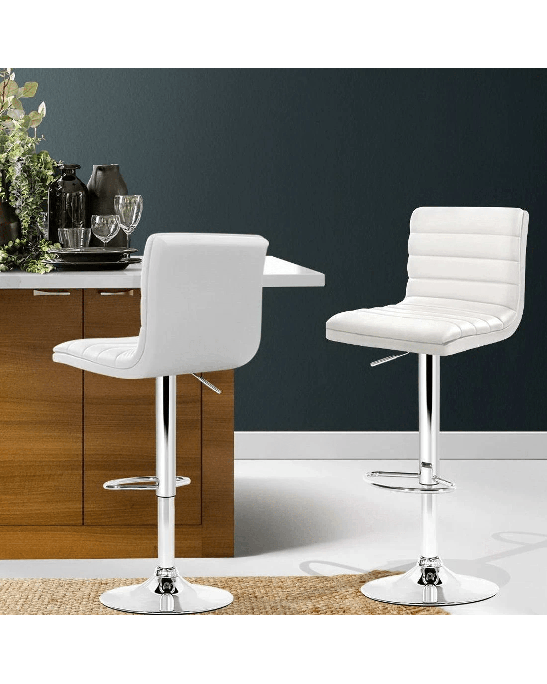Sold by Aisle SixArtiss 2x Bar Stools Padded Leather Gas Lift - White