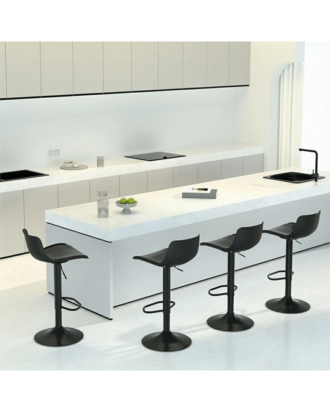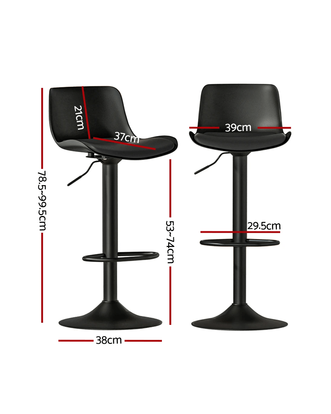 Relax and dine in style with our Artiss Fynn Bar Stools. With its classic design and contemporary good looks, the bar stool is a must for every house-proud person. Upholstered in premium PU leather with a strong PP backrest, the bar stools will support your guests over long evenings of wining and dining. A thick foam padded seat alongside a semi-circular footrest ensures relaxed sitting. The omnidirectional swivel seat makes it easy for guests to turn and follow the conversation. Height is easily adjusted with the SGS-tested gas lift. The large base always ensures stability, while a floor protector under the base helps to always keep your pristine floor scratch-free and prevent slipping. If you're ready to update your bar setting, you'll love the Artiss Fynn Bar Stool Set.