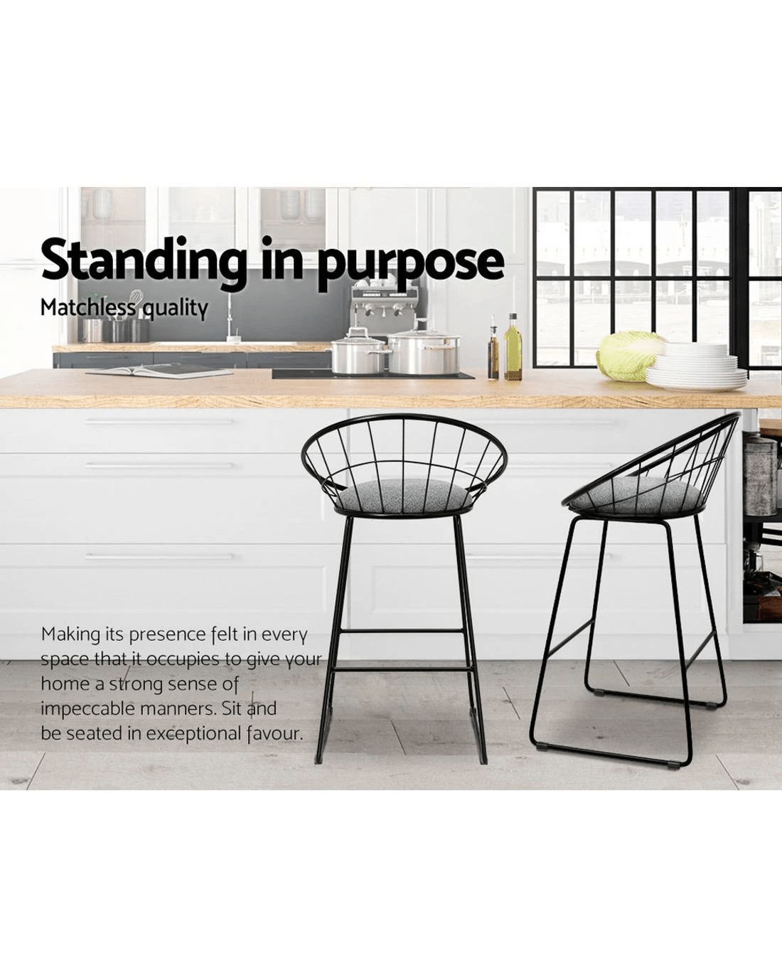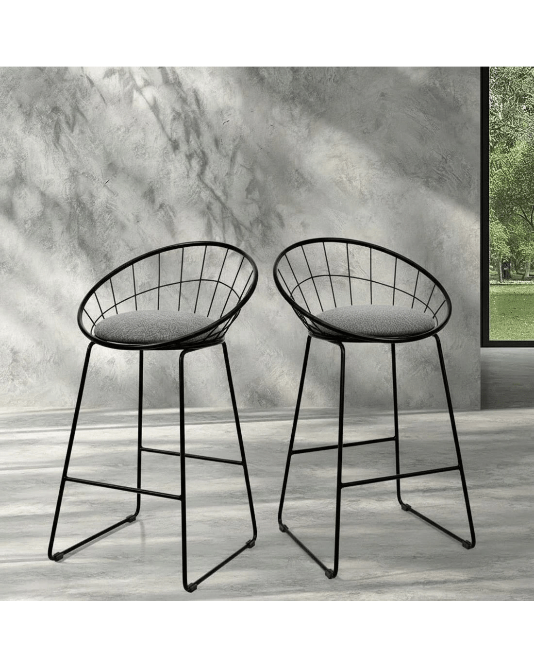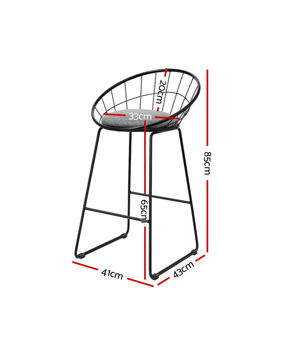 Artiss 2x Bar Stools Padded Seat Metal - Black