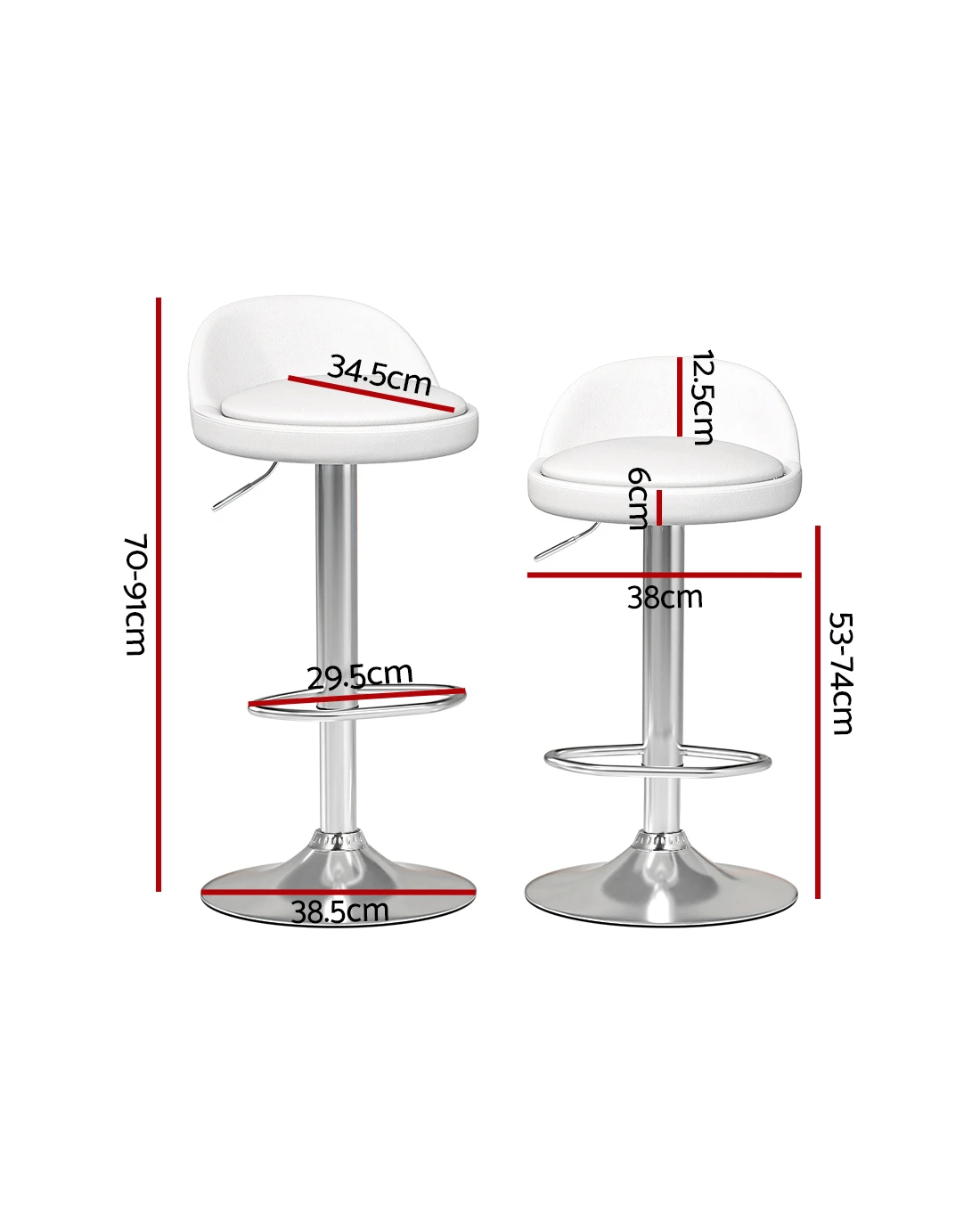 Artiss 2x Bar Stools PU Leather Gas Lift - White