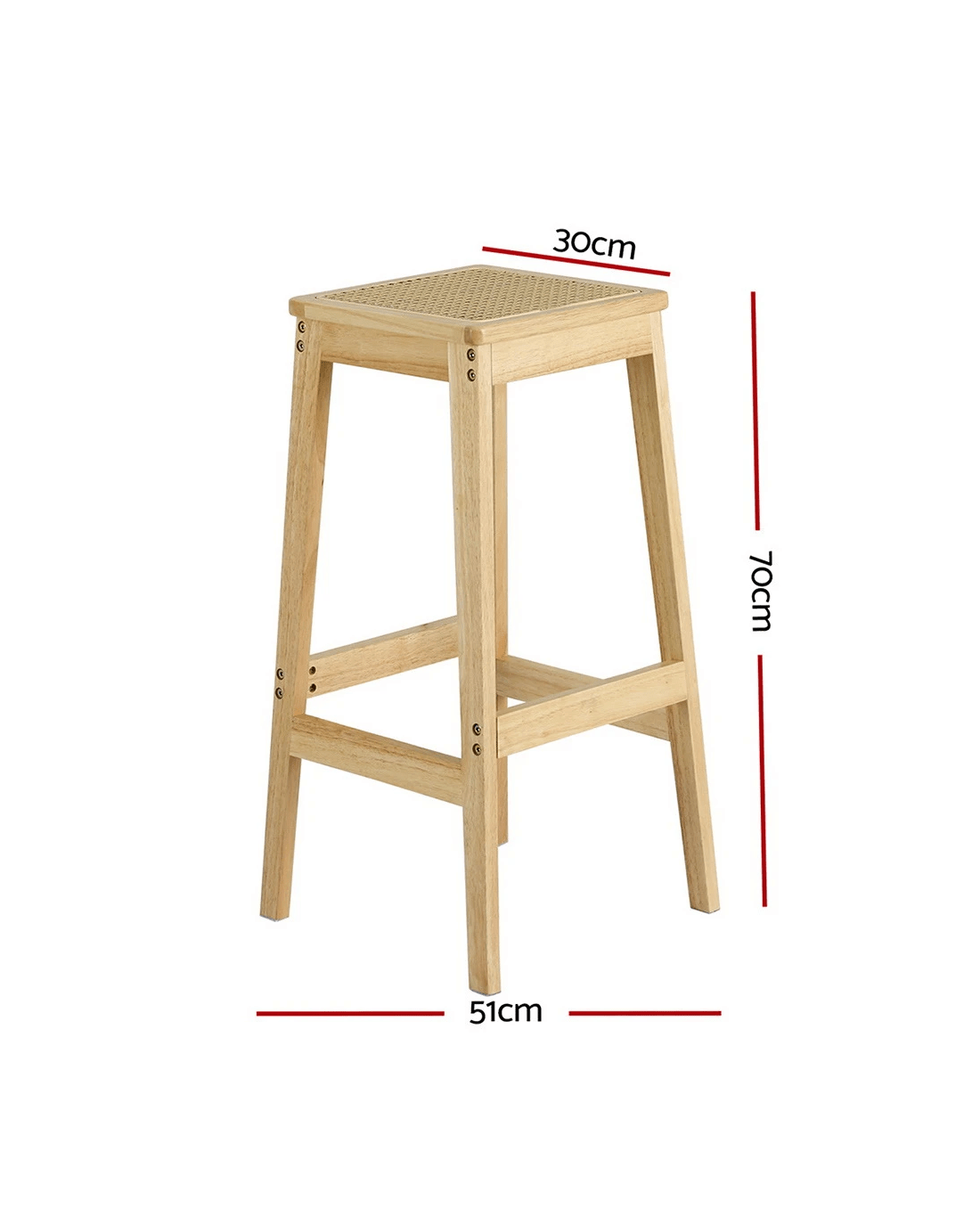 Sold by Aisle SixArtiss 2x Bar Stools Rubber Wood Stool Counter Chair Rattan Barstools Kitchen - Natural