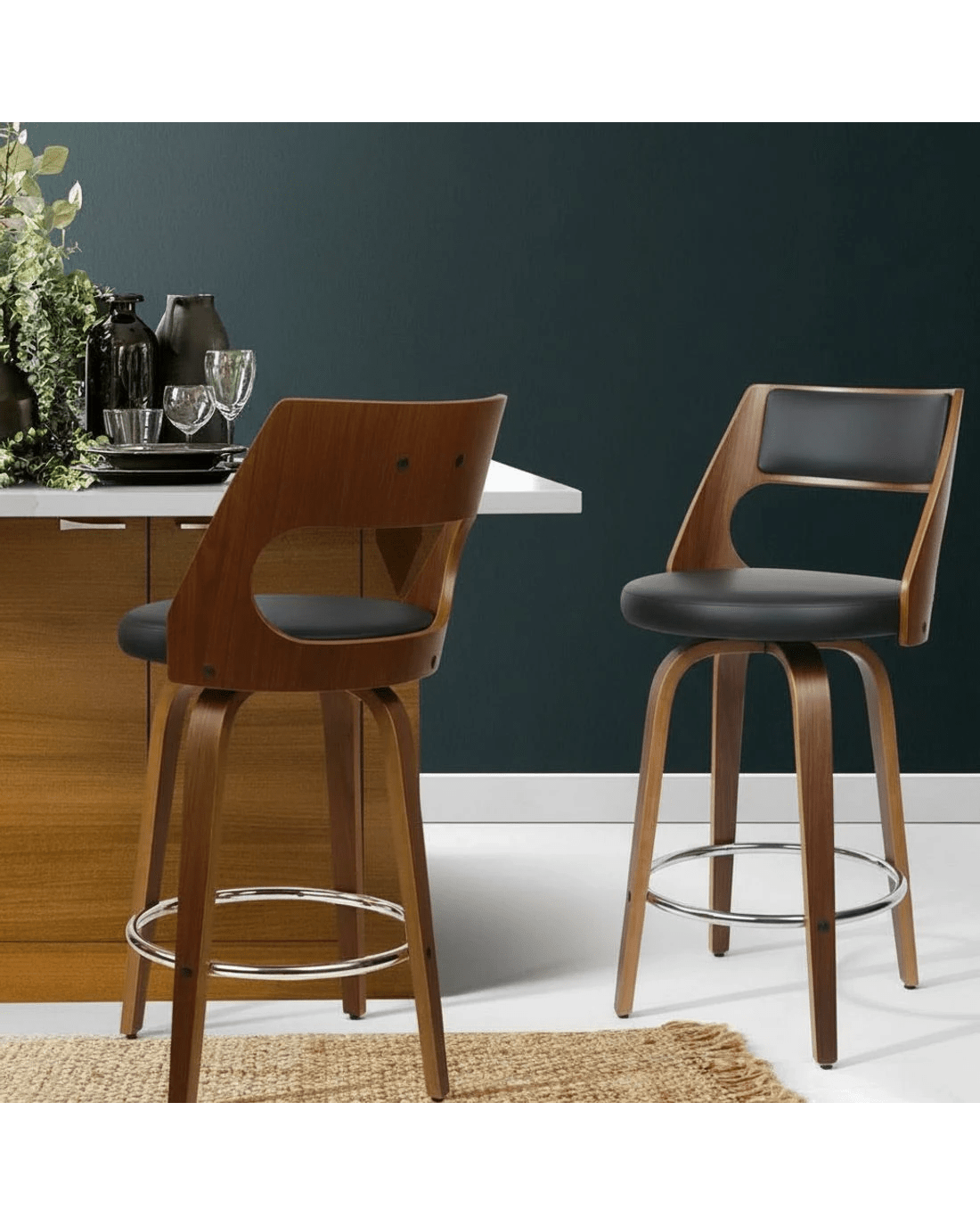 Sold by Aisle SixArtiss 2x Bar Stools Swivel Leather Chair 65cm - Black