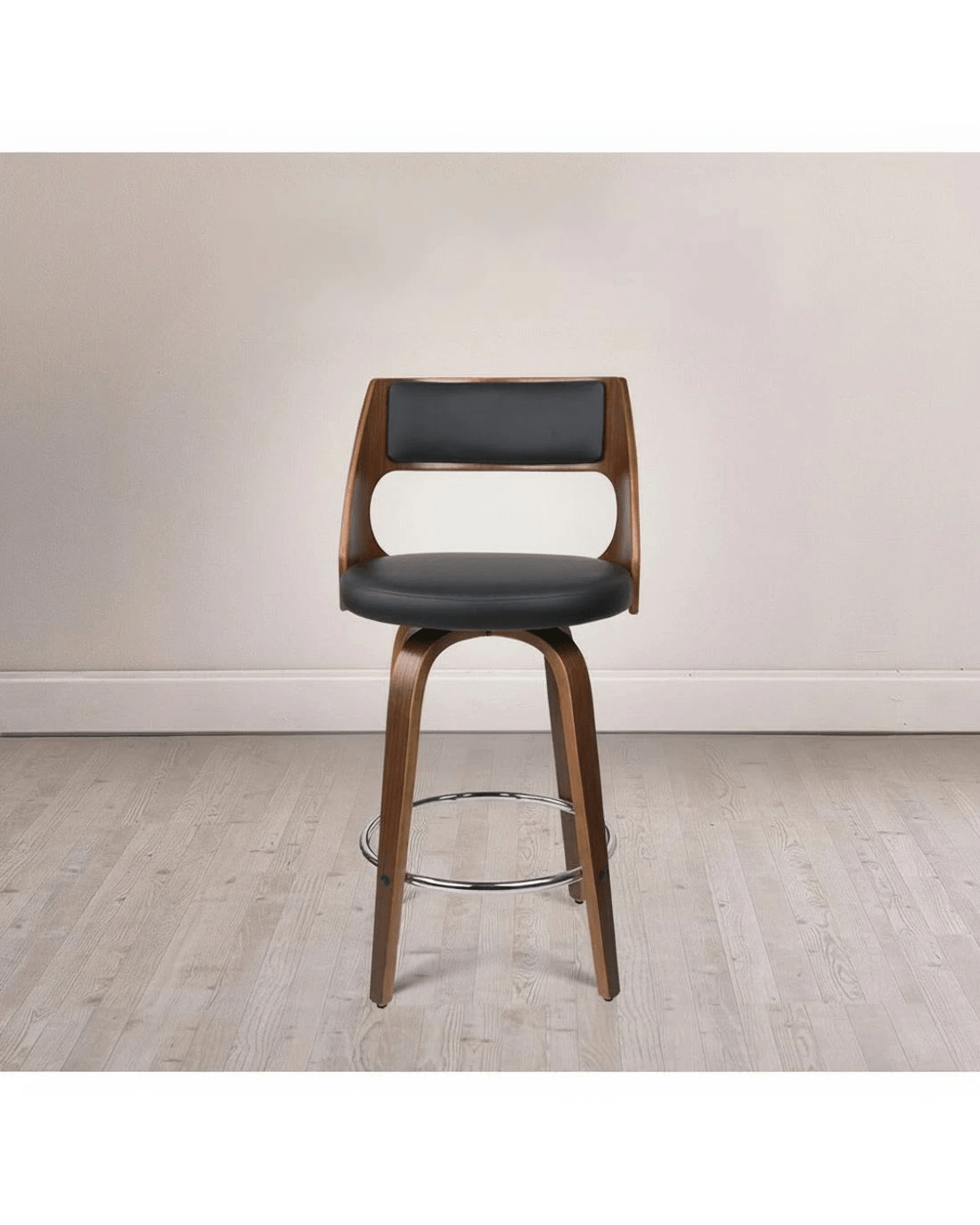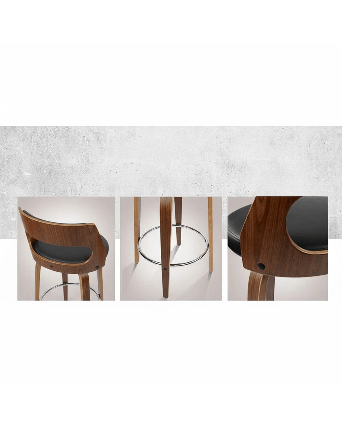 Wood, metal and leather in total harmony. Such is the eclectic design of our Bentwood Bar Stool that stands out from other mundane offerings. Meticulously crafted with solid wood, the bar stool features a generous puckered faux leather integrated seat and backrest that feel comfortably smooth and look absolutely classy. The contoured backrest also provides appreciable support while the anti-slip rubber pads at the bottom of the legs remain firm and steady even with robust use. Not least, the chrome footrest rectangle lets you perch in style, feet up. For home, office, bar or cafe, the Bentwood Bar Stool is a masterpiece of creative flair in more ways than one. Get yours today