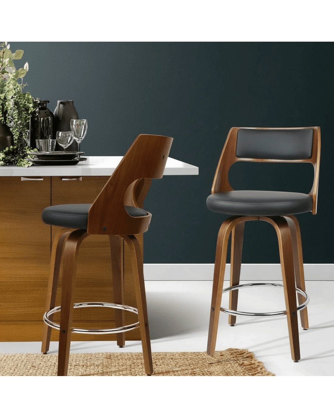 Sold by Aisle SixArtiss 2x Bar Stools Swivel Leather Chair 76cm - Black