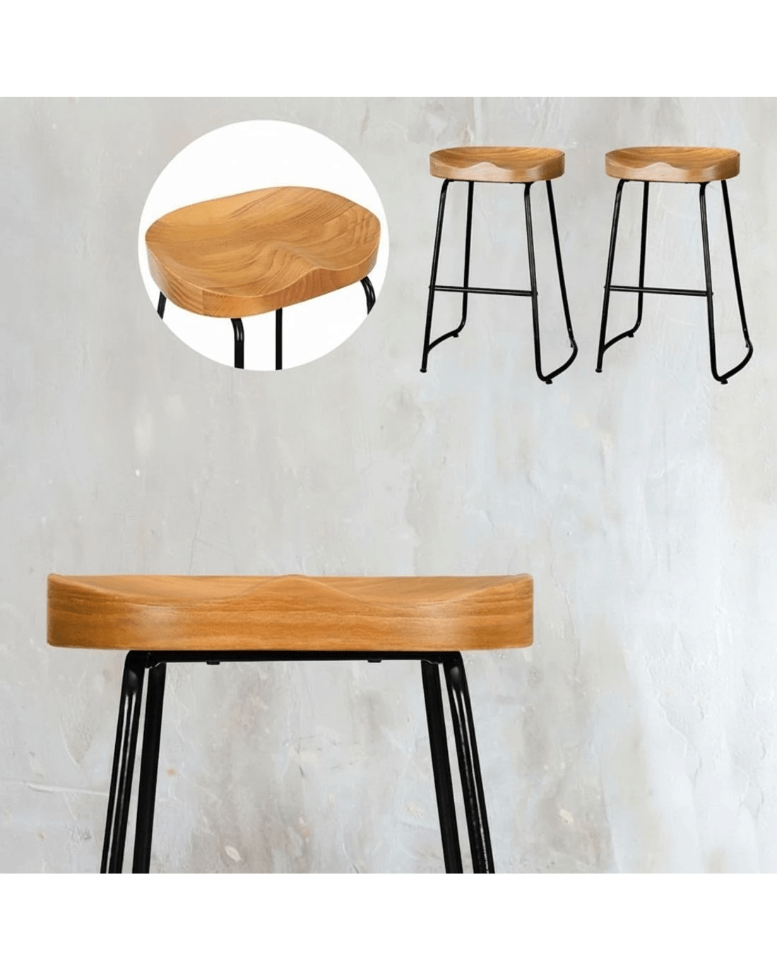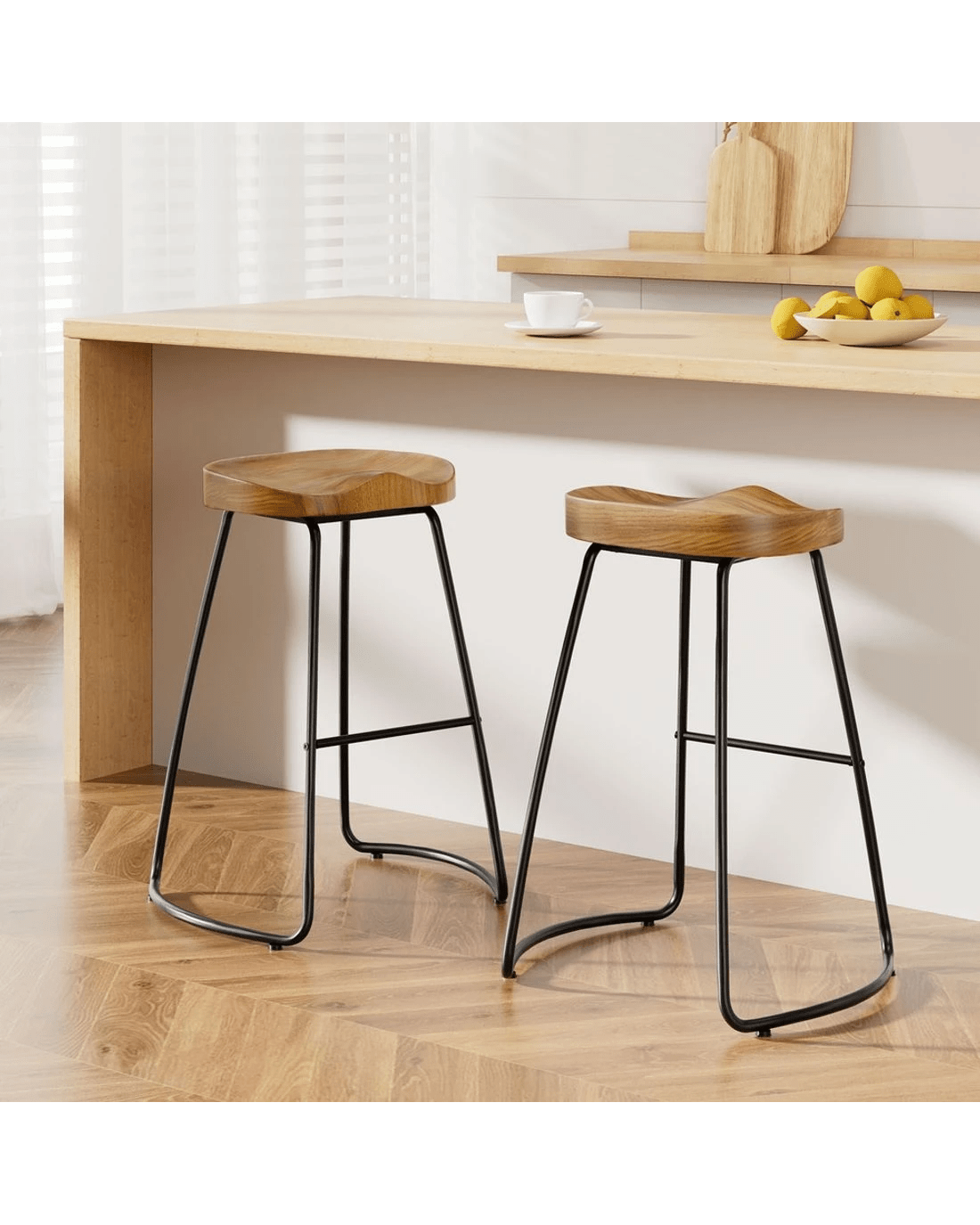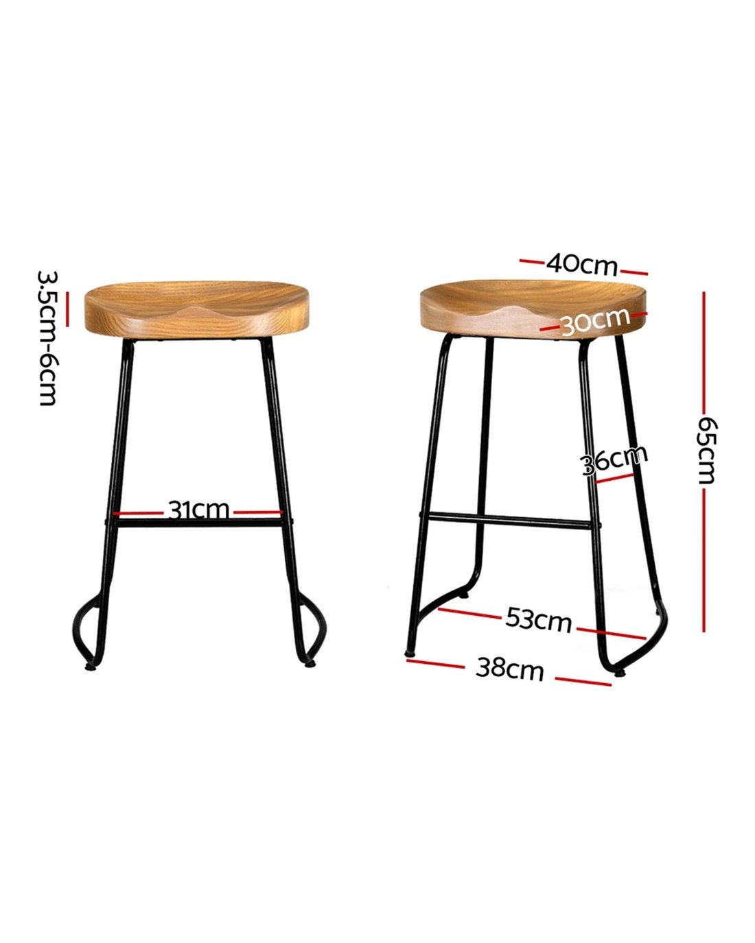 Artiss 2x Bar Stools Tractor Seat 65cm Wooden - Brown