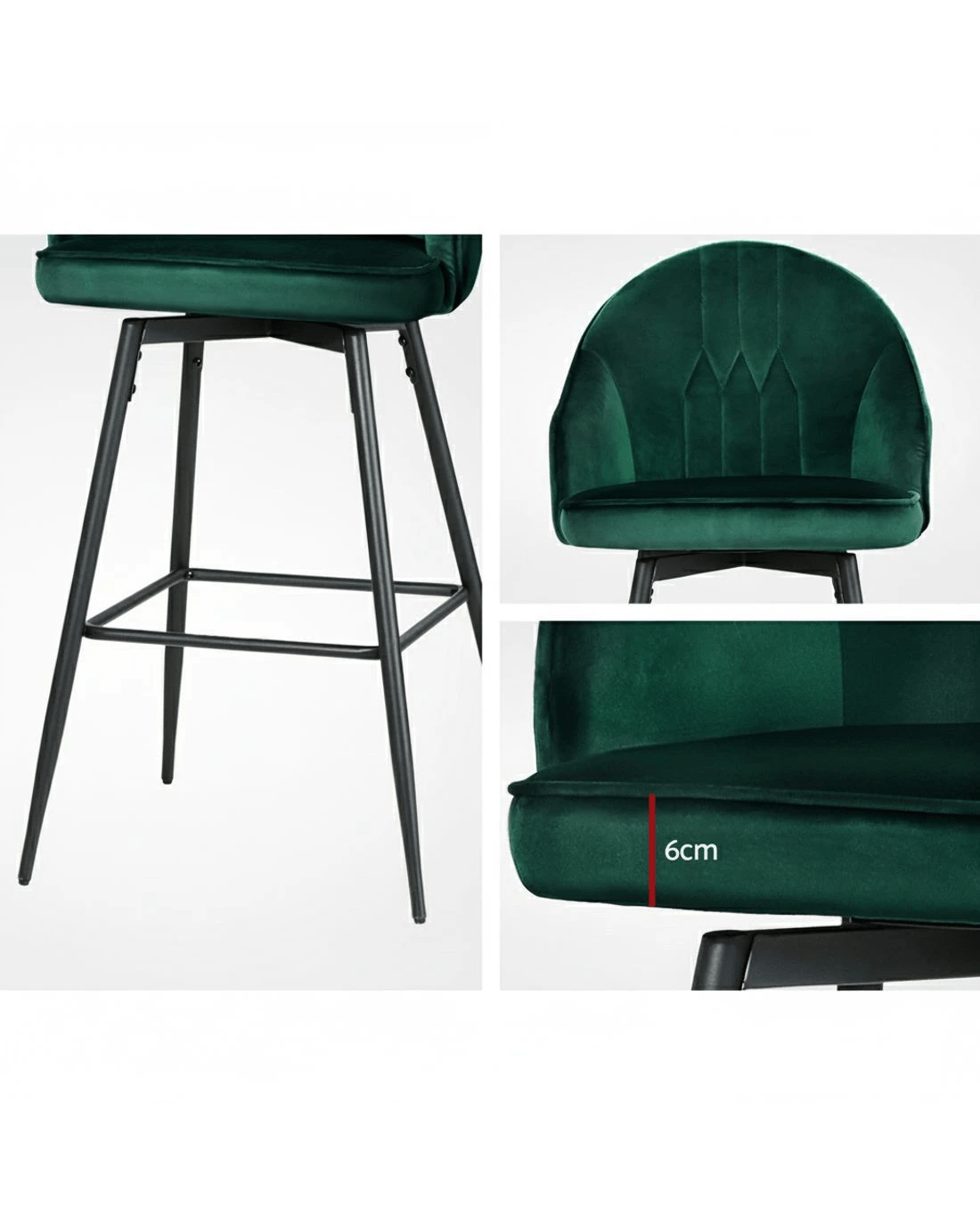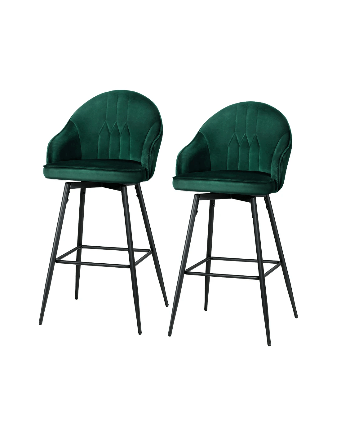 Sold by Aisle SixArtiss 2x Bar Stools Velvet Swivel Metal Legs Green - Green