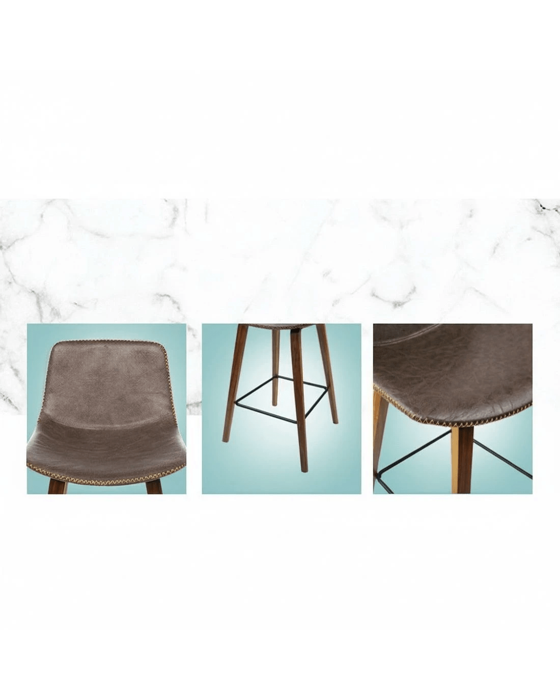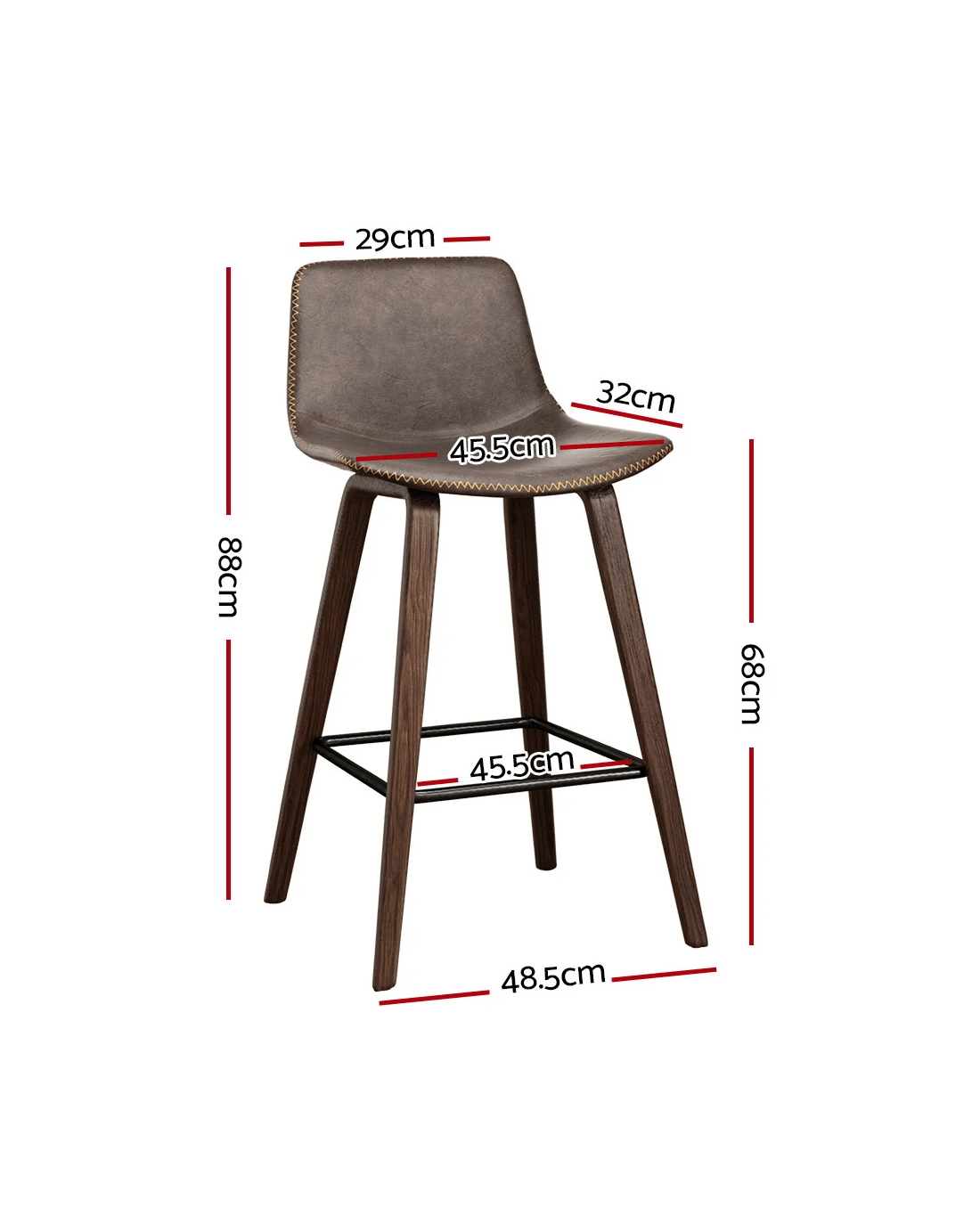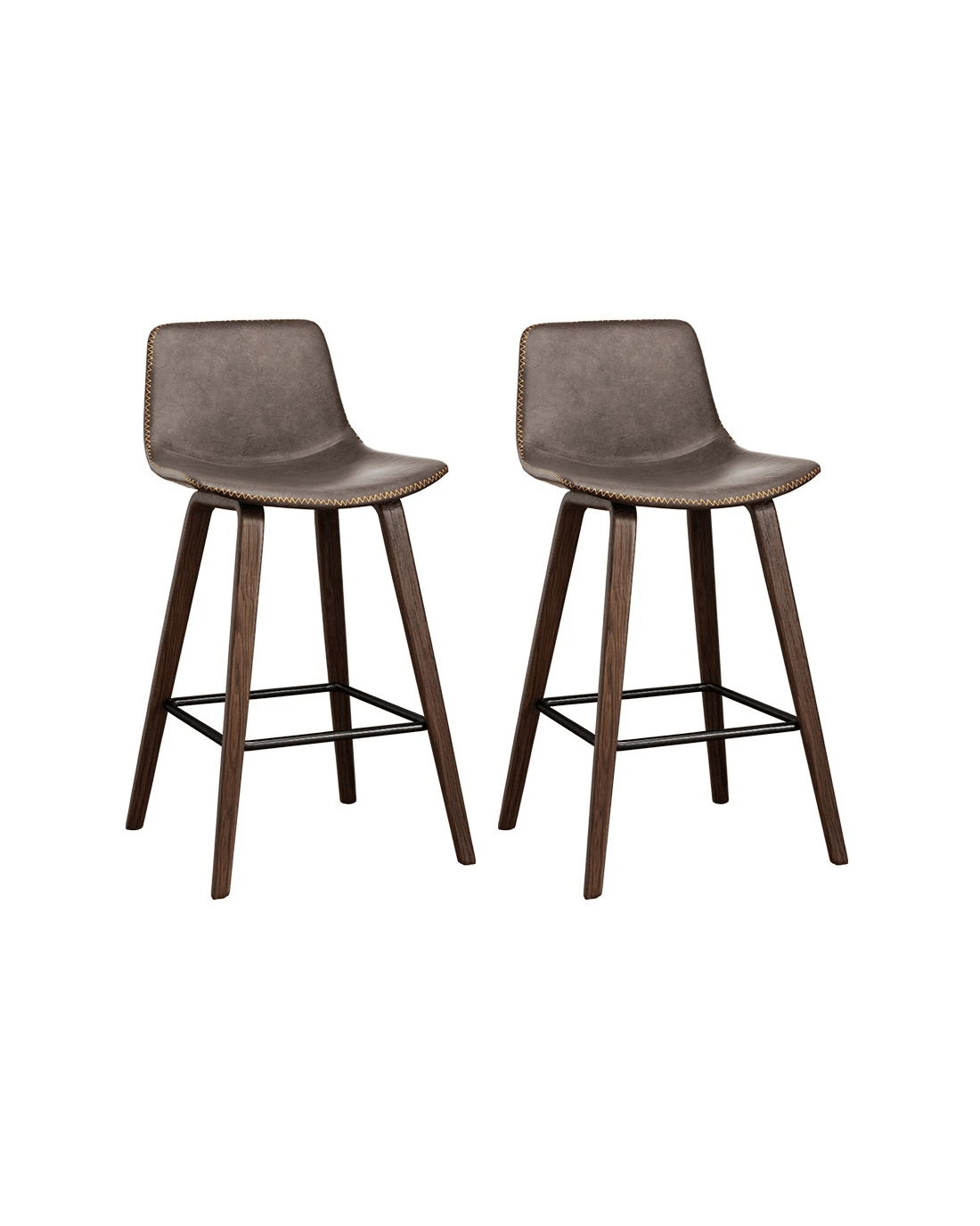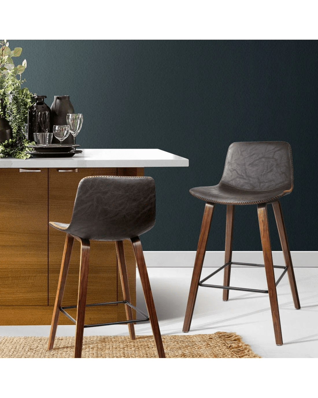 Sold by Aisle SixArtiss 2x Bar Stools Vintage Leather Wooden - Brown