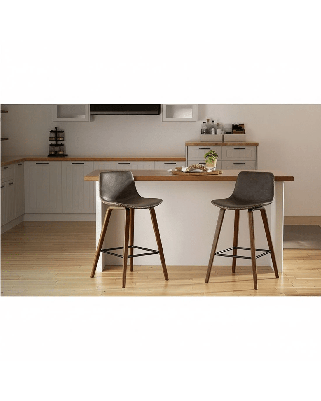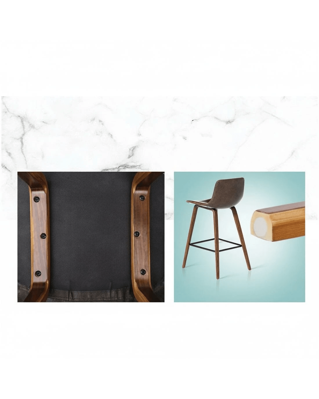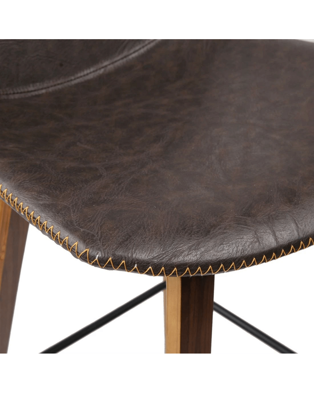 Meticulously crafted with solid wood in a stunning walnut finish for the legs, the Bentwood Bar Stool features a generous puckered faux leather integrated seat and backrest that feel comfortably smooth and look absolutely classy. The mid-height backrest also provides appreciable support while the anti-slip rubber pads at the bottom of the legs remain firm and steady even with robust use. Not least, the powder coated metal footrest rectangle lets you perch in style, feet up.