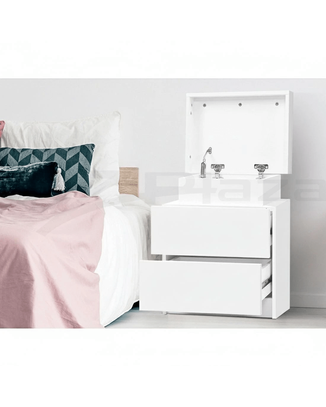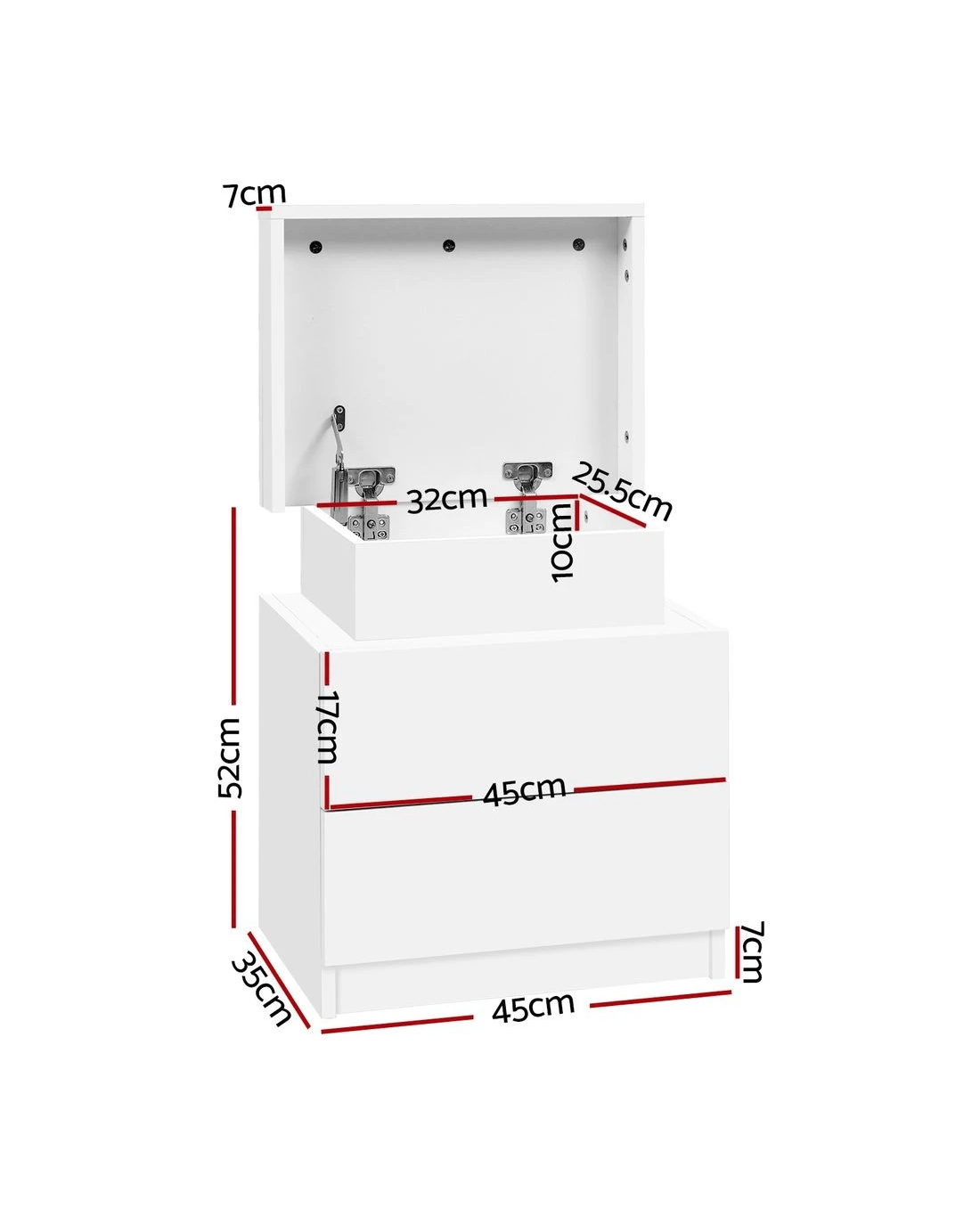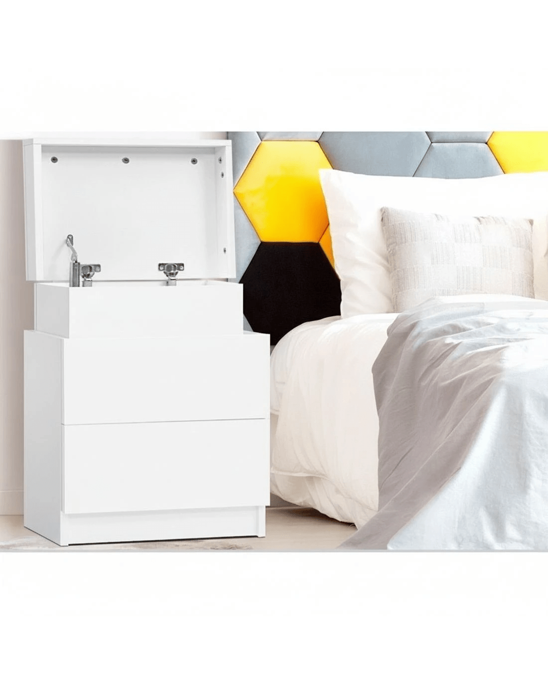 Sold by Aisle SixArtiss 2X Bedside Table 2 Drawers Lift-up Storage - White