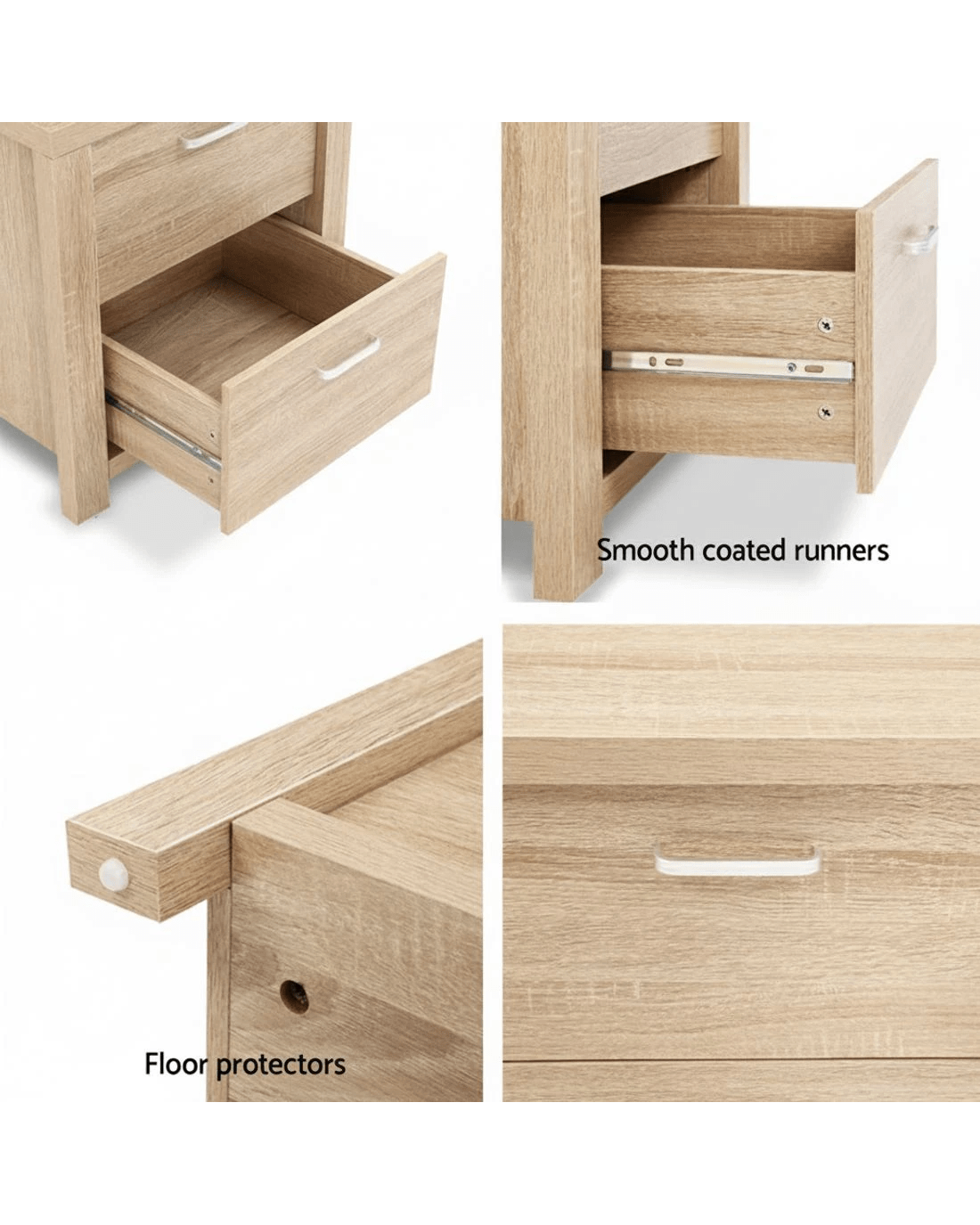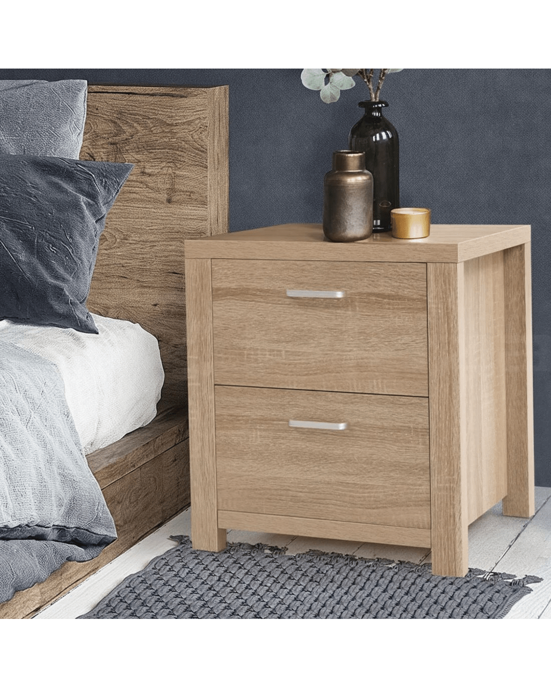 People sometimes wonder why they need a bedside table. The answer is simply because a good bedside table is extra storage space for your personal essentials, a spot for your table lamp, and of course, a place for your cuppa. And not least, a perfect companion to your bed. Our Artiss Maxi Bedside Table is simple and modern with a lasting appeal. Constructed from 30mm thick honeycomb and 15mm thick particle boards with beautiful natural woodgrain finish, the bedside table is solidly constructed and equipped with quality components like smooth coated drawer runners and floor protectors. Better still, ample storage space is found with two spacious drawers for all your bedside or personal essentials. Too good to be used only in the bedroom? Well, you can also use the bedside table as a side table with drawers to complement your contemporary home décor. And best of all, you can also match with other products from the Maxi series for the complete simple-natural look.