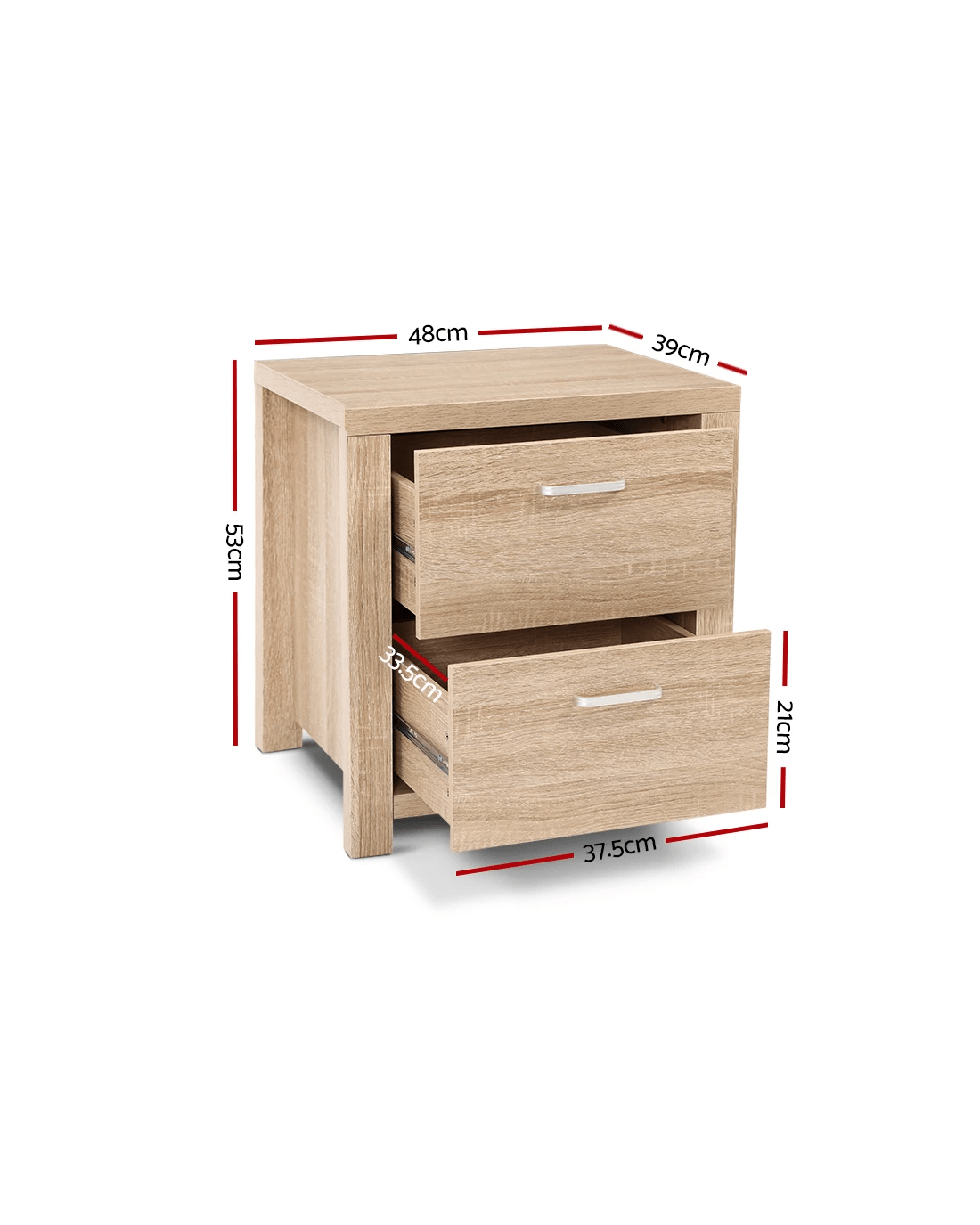 Artiss 2x Bedside Table 2 Drawers - Natural