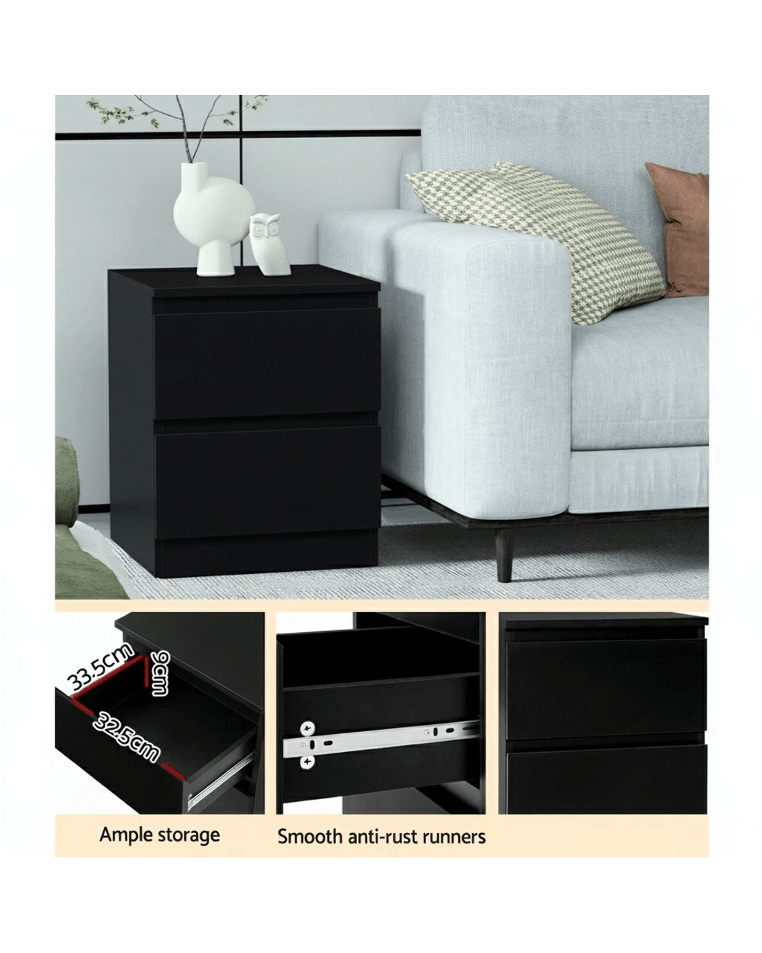 Sold by Aisle SixArtiss 2x Bedside Table 2 Drawers - Black