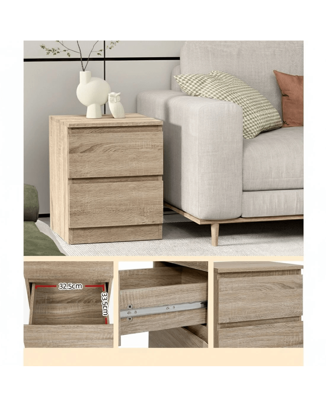 A useful bedside addition, the Artiss Pepe Bedside Table is elegant and simple with a lasting appeal. Made of 15mm thick particle board, the bedside table is sturdy and durable in every way. Two deep drawers sliding on smooth anti-rust runners provide ample storage space. Better still, the handle-free design gives it a modern vibe that stands out from the mundane. Not least, the finish is impeccable and easy to maintain and clean.