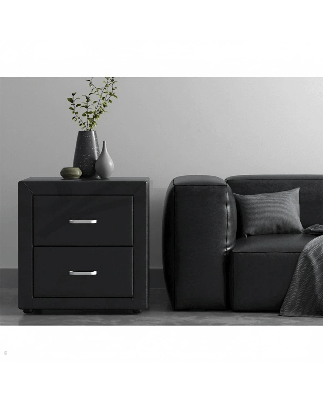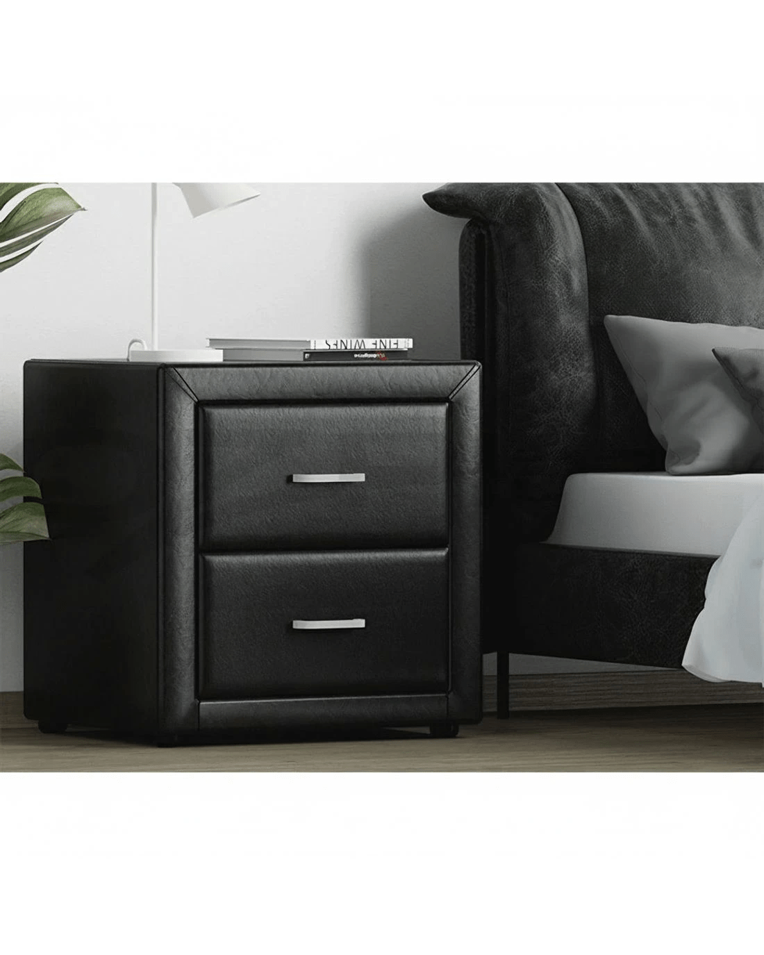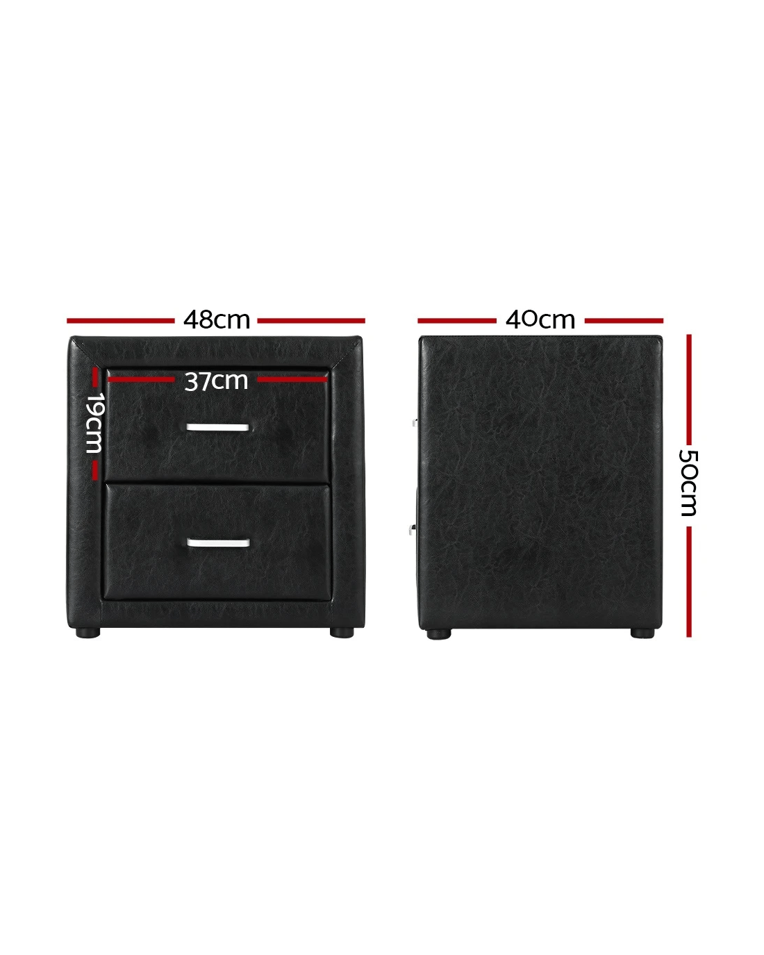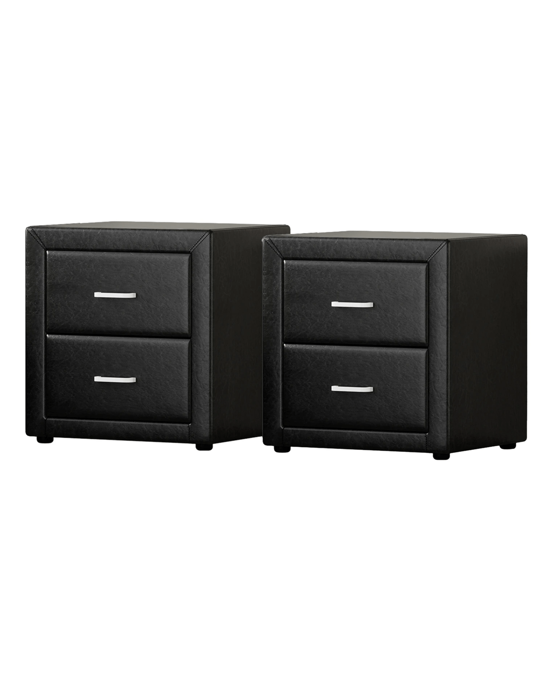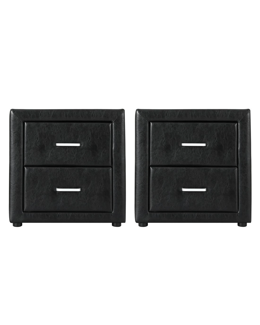 Artiss 2X Bedside Table 2 Drawers Side Table Leather - CADEN - Black