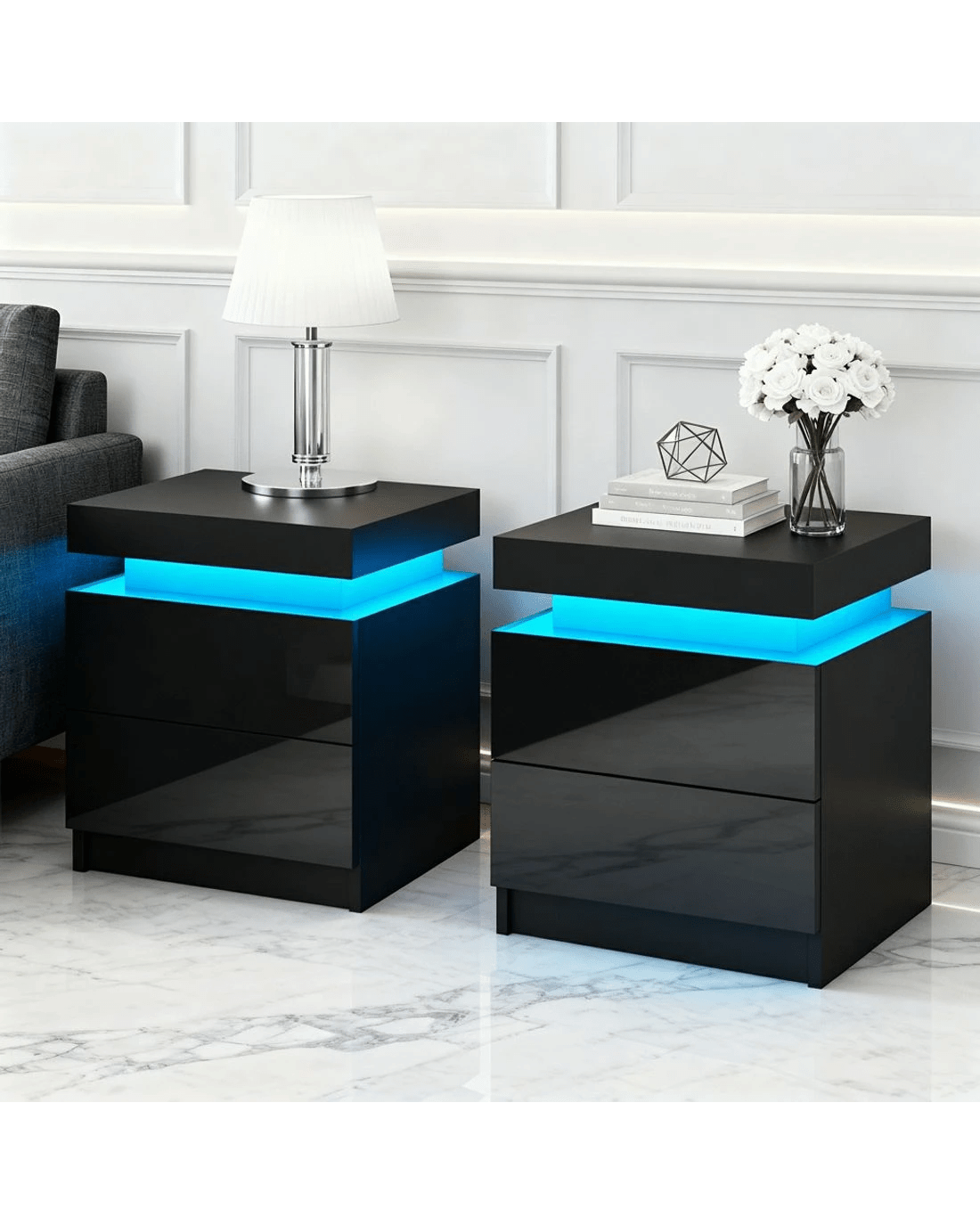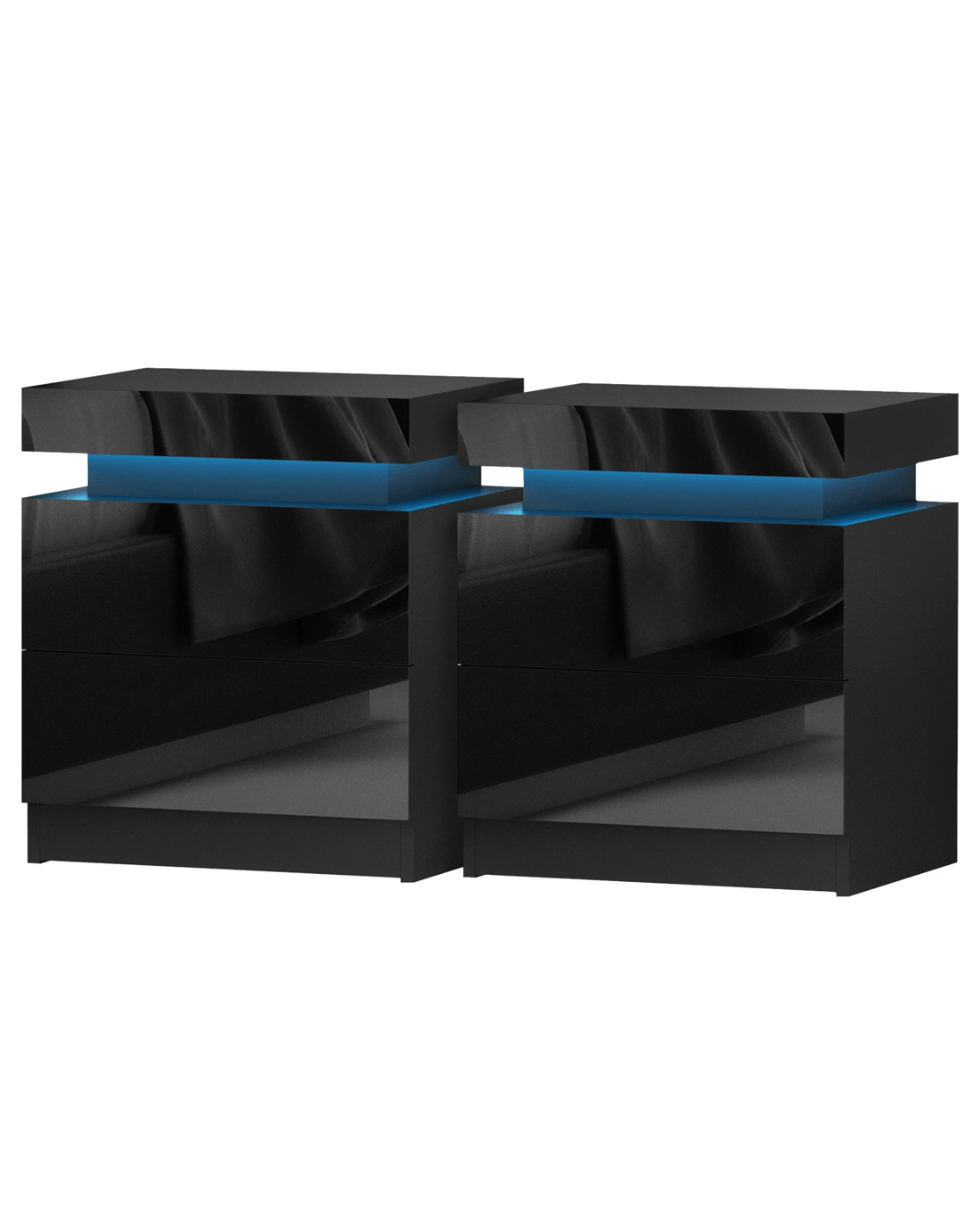 Sold by Aisle SixArtiss 2X Bedside Table LED 2 Drawers Lift-up Storage - COLEY - Black