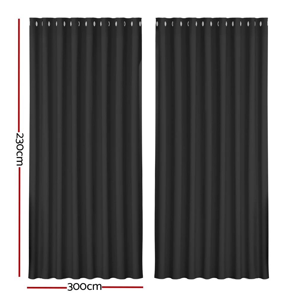Artiss 2X Blockout Curtains Eyelet 300x230cm - Black