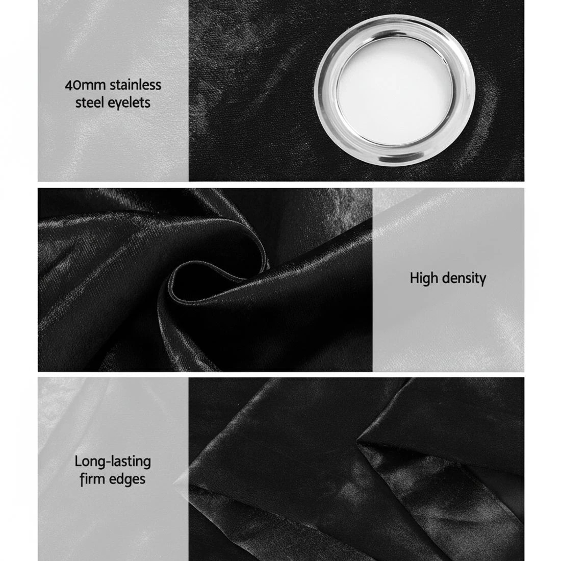 Artiss 2X Blockout Curtains Eyelet 300x230cm Shine - Black