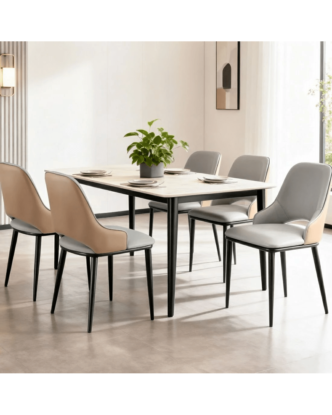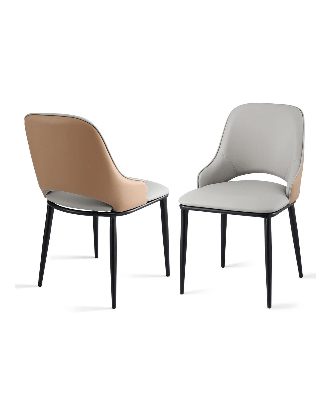 Built to last, the chairs stand on robust metal legs, offering excellent stability and a modern aesthetic that complements the two-tone upholstery. They are wonderfully versatile, perfect for the dining room, as accent chairs in the lounge, or in a trendy cafe environment.