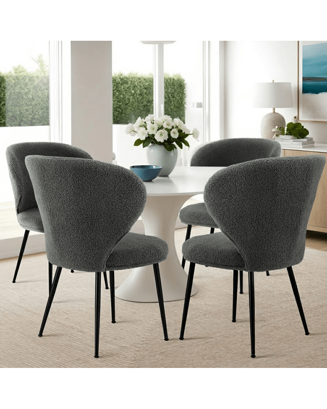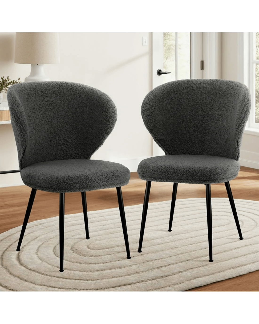 Sold by Aisle SixArtiss 2x Dining Chairs Sherpa Boucle Wing Back - Grey
