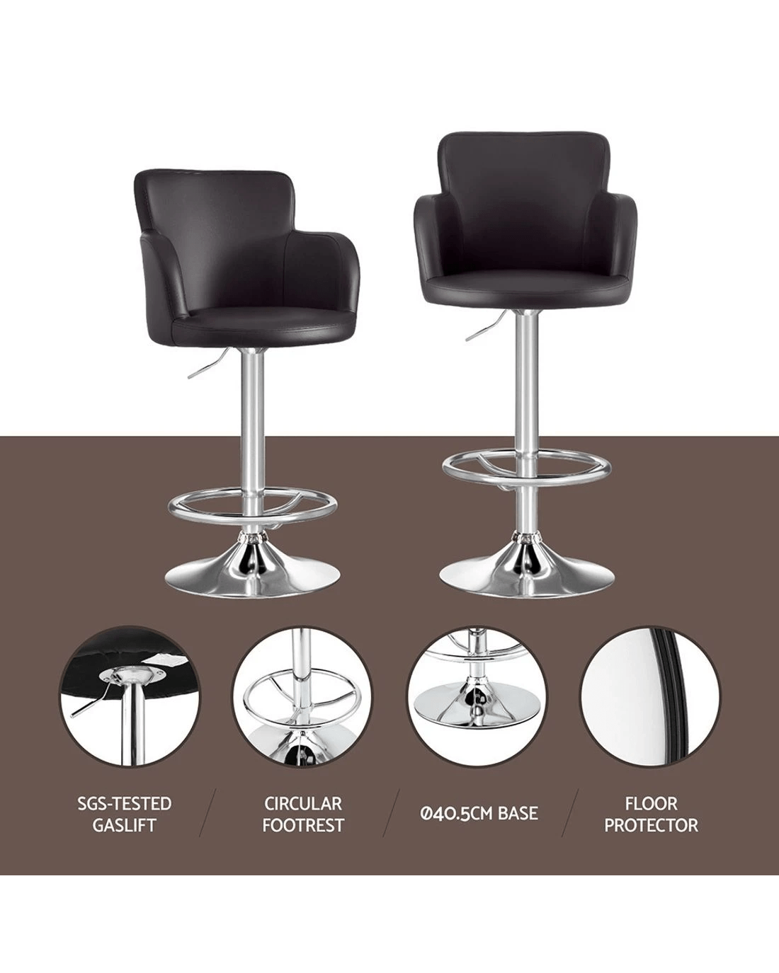 Sold by Aisle SixArtiss 2x Leather Bar Stools Swivel Adjustable Gas Lift PU Counter Chairs - Brown