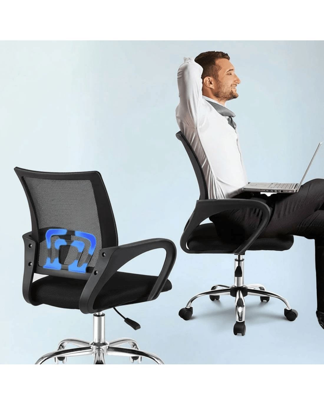 When you're working hard and playing hard, the last thing you need is a hard chair. Our Artiss Mesh Office Chair takes work and relaxation seriously, giving you a premium chair that does more than just give you a comfortable seat. The highly breathable mesh means that you are never hot and bothered during long seating sessions as the chair is always well ventilated. Not only that, but its built-in lumbar support conforms to your back to help fix your posture and ease back pain. The thick padded seat ensures that you are always seated comfortably. You can easily set the chair height with the gas lift to suit your favourite position – no more slouching over the desktop. The chair can also be rotated 360° to face any direction, while the sturdy chrome base features omni-directional wheels for smooth movement. Whatever the occasion – work, gaming, or relaxation – the Mesh Office Chair will be there to support you.