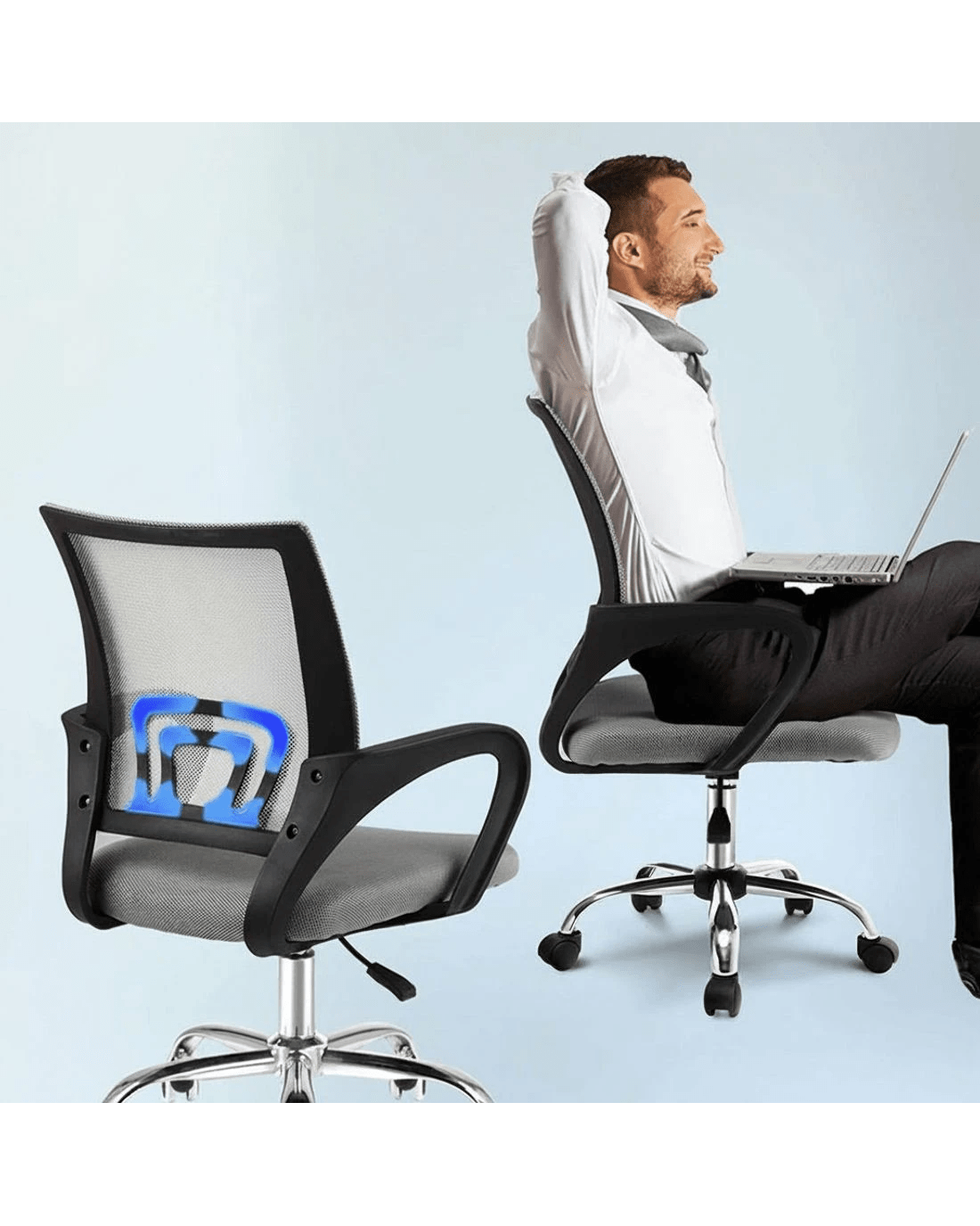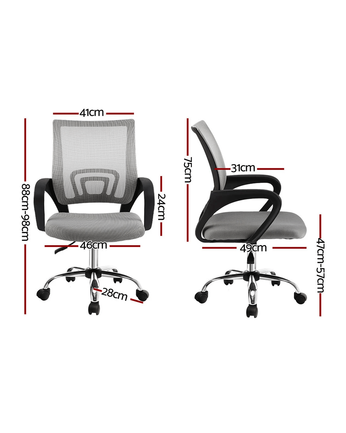 When you're working hard and playing hard, the last thing you need is a hard chair. Our Artiss Cody Office Chair takes work and relaxation seriously, giving you a premium chair that does more than just give you a comfortable seat. The highly breathable mesh means that you are never hot and bothered during long seating sessions as the chair is always well ventilated. Not only that, but its built-in lumbar support conforms to your back to help fix your posture and ease back pain. The thick padded seat ensures that you are always seated comfortably. You can easily set the chair height with the gas lift to suit your favourite position – no more slouching over the desktop. The chair can also be rotated 360° to face any direction, while the sturdy chrome base features omni-directional wheels for smooth movement. Whatever the occasion – work, gaming, or relaxation – the Cody Office Chair will be there to support you.
