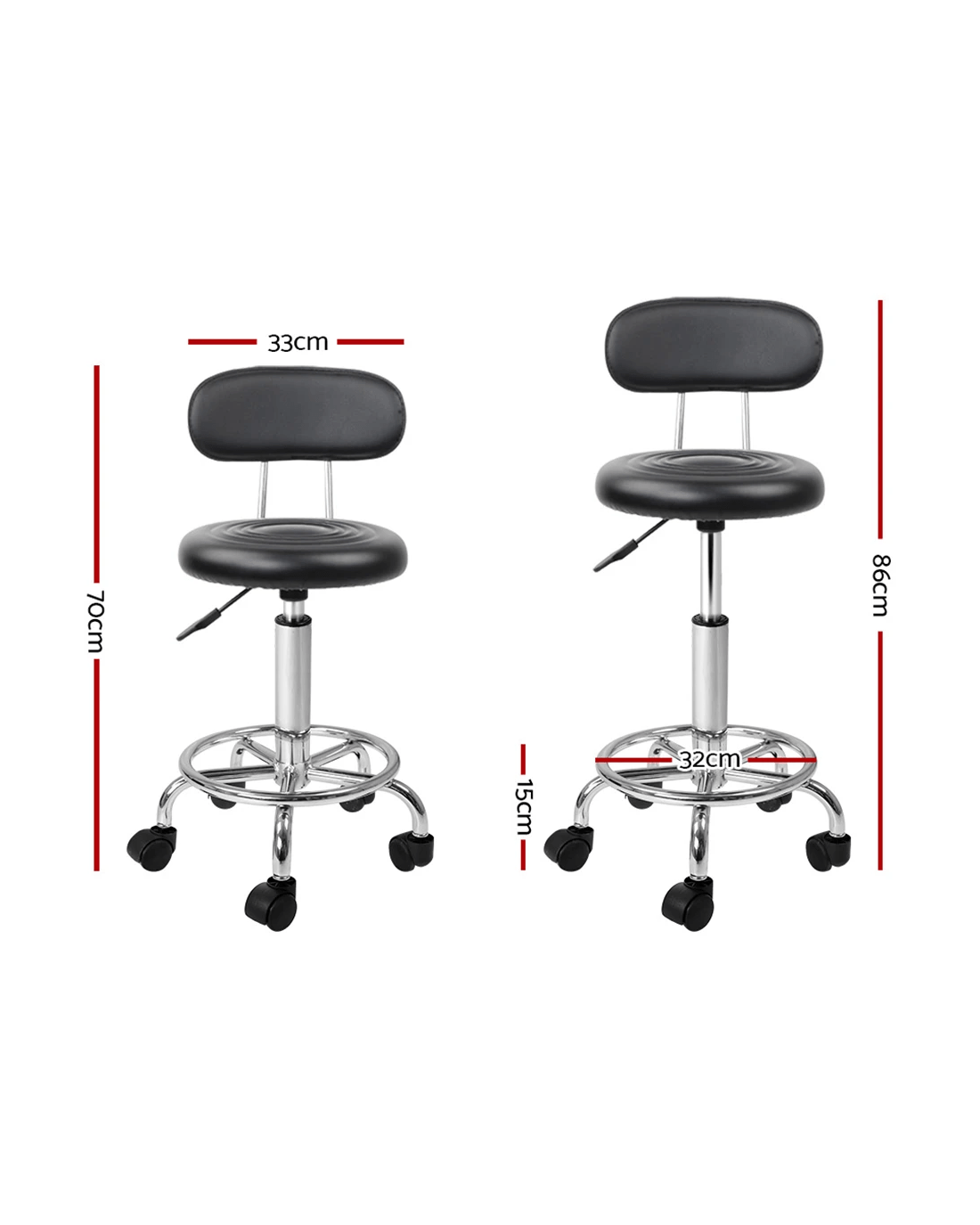 Looking to add a glamourous touch to your salon? You can do it effortlessly with the Artiss' gorgeous salon stool. It's not just for a salon, but you can use these stools in your tattoo parlour, medical clinic, café, and music studio. Our salon style stools will instantly give your space a stylish and modern look. These stools are designed for ultimate comfort and convenient use. It features a round seat design with a slightly curved backrest that makes you feel comfortable even if you've been sitting for long hours. The thick foam padding makes the seat soft, and the PU leather upholstery with a light sheen highlights its alluring texture. Our salon stool also has five nylon smooth castor wheels that offer easy manoeuvrability. The seat is 360˚ rotatable, enabling you to face any direction. It also comes with a heavy-duty footrest and base for added stability and comfort. You can even adjust its height with an SGS-certified gas lift lever. So why wait? Purchase this beautifully designed salon stool. You won't regret it.
