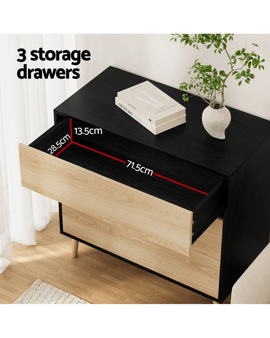 3 storage drawers