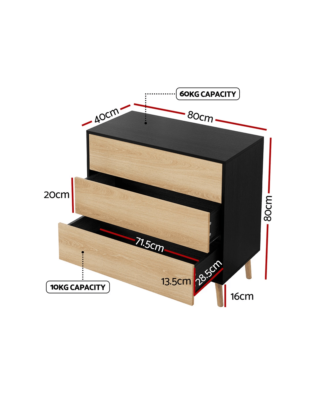 Drawer weight capacity: 10kg