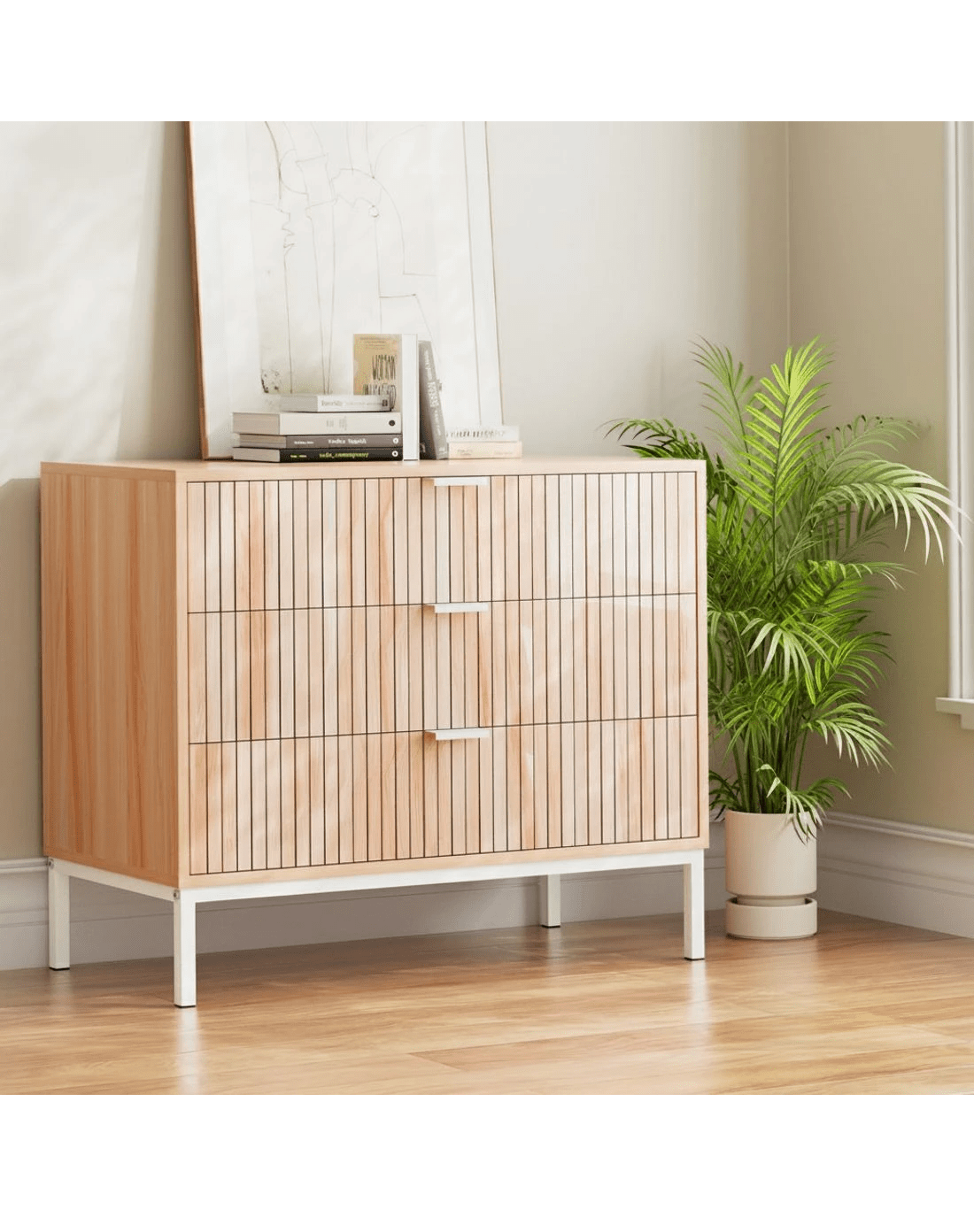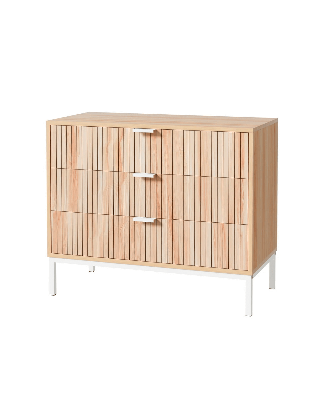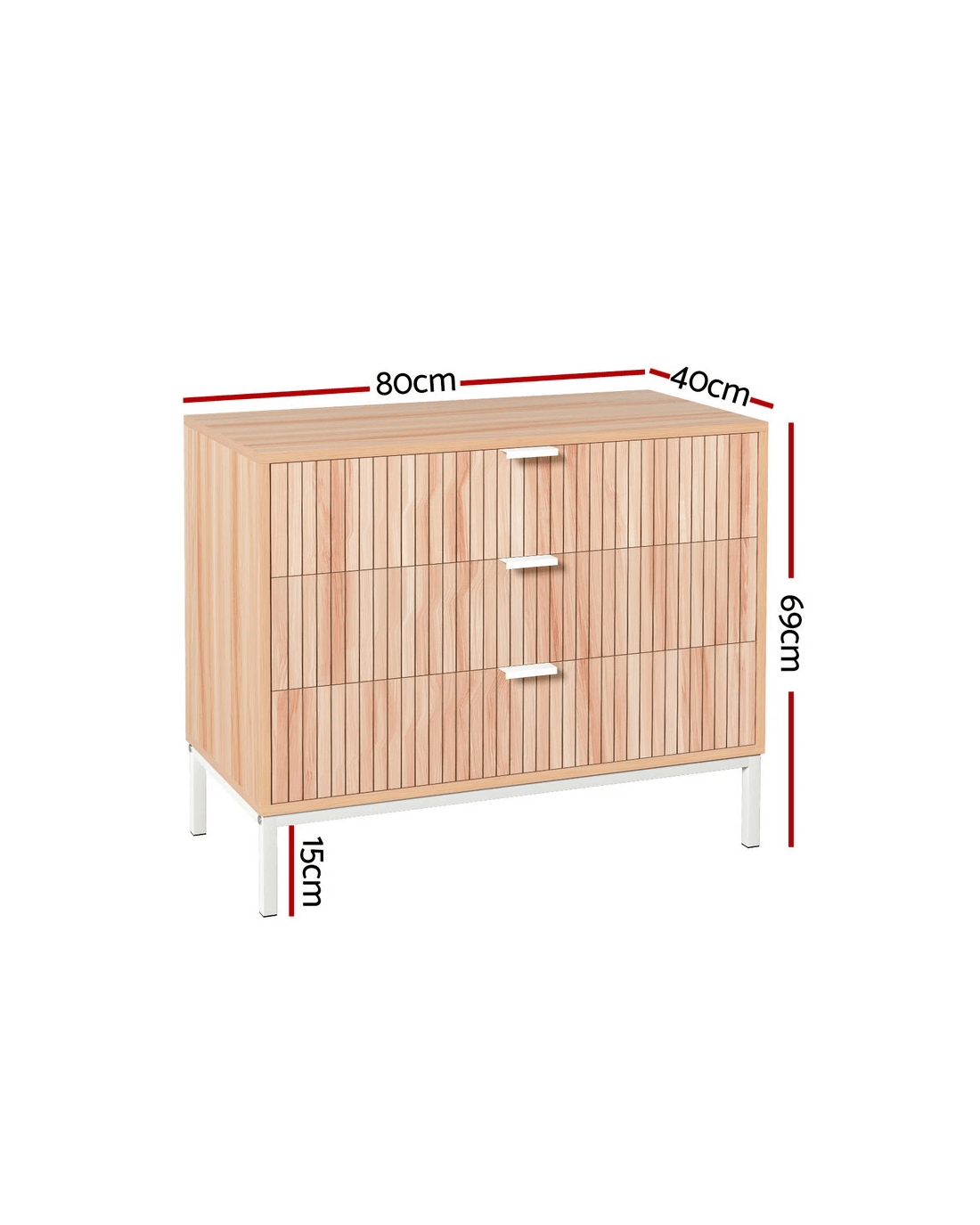 This stylish and functional Artiss chest of drawers is the perfect storage solution for any room in your home. Crafted from durable particle board with a sleek melamine finish, it offers three spacious drawers to keep your belongings neatly organised. The sturdy metal legs provide excellent stability, while the sleek metal handles add a touch of modern elegance. Smooth metal runners ensure effortless drawer operation, making it easy to access your stored items.