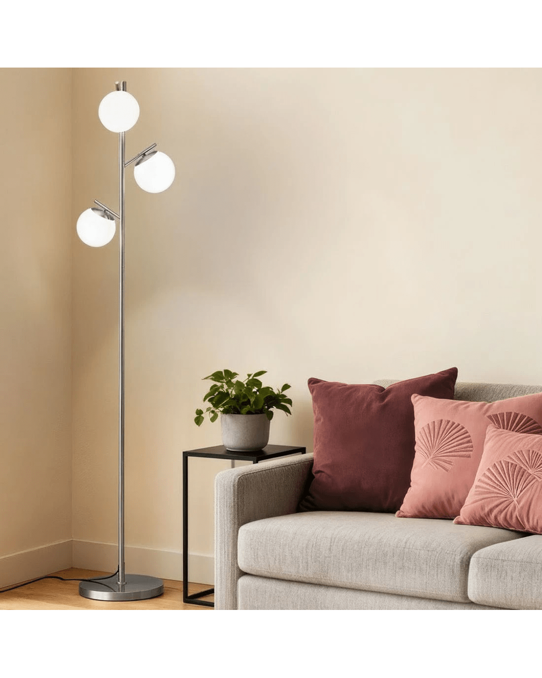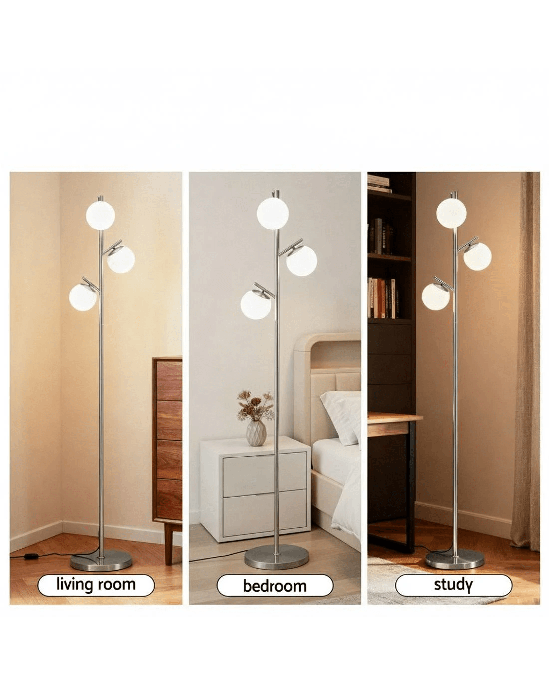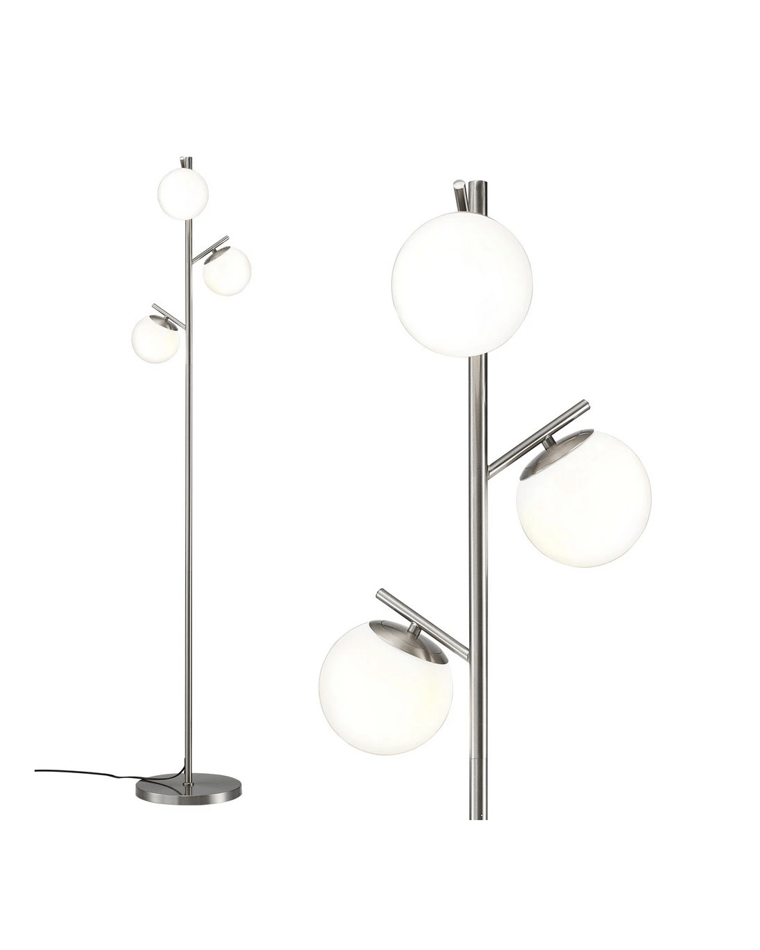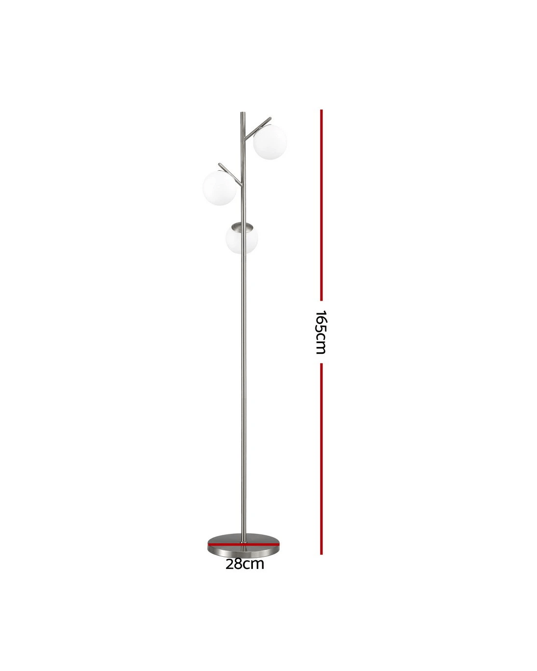 Artiss 3-Light Tree Floor Lamp 165cm Tall Standing Light with Sphere Glass Shades for Modern Homes - Silver - Silver