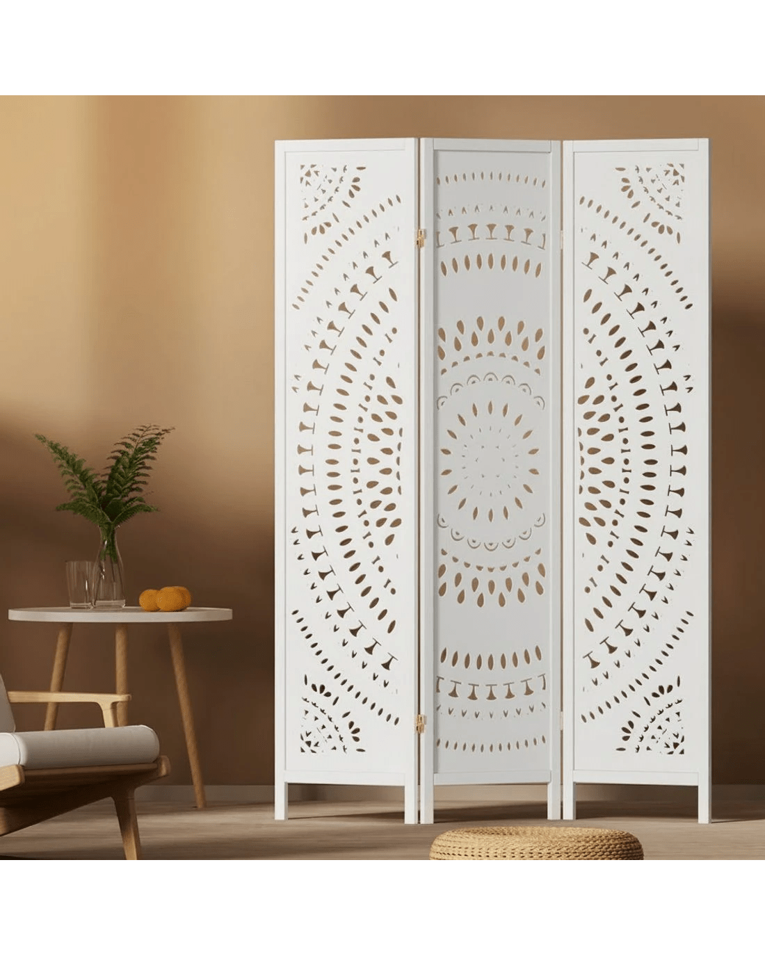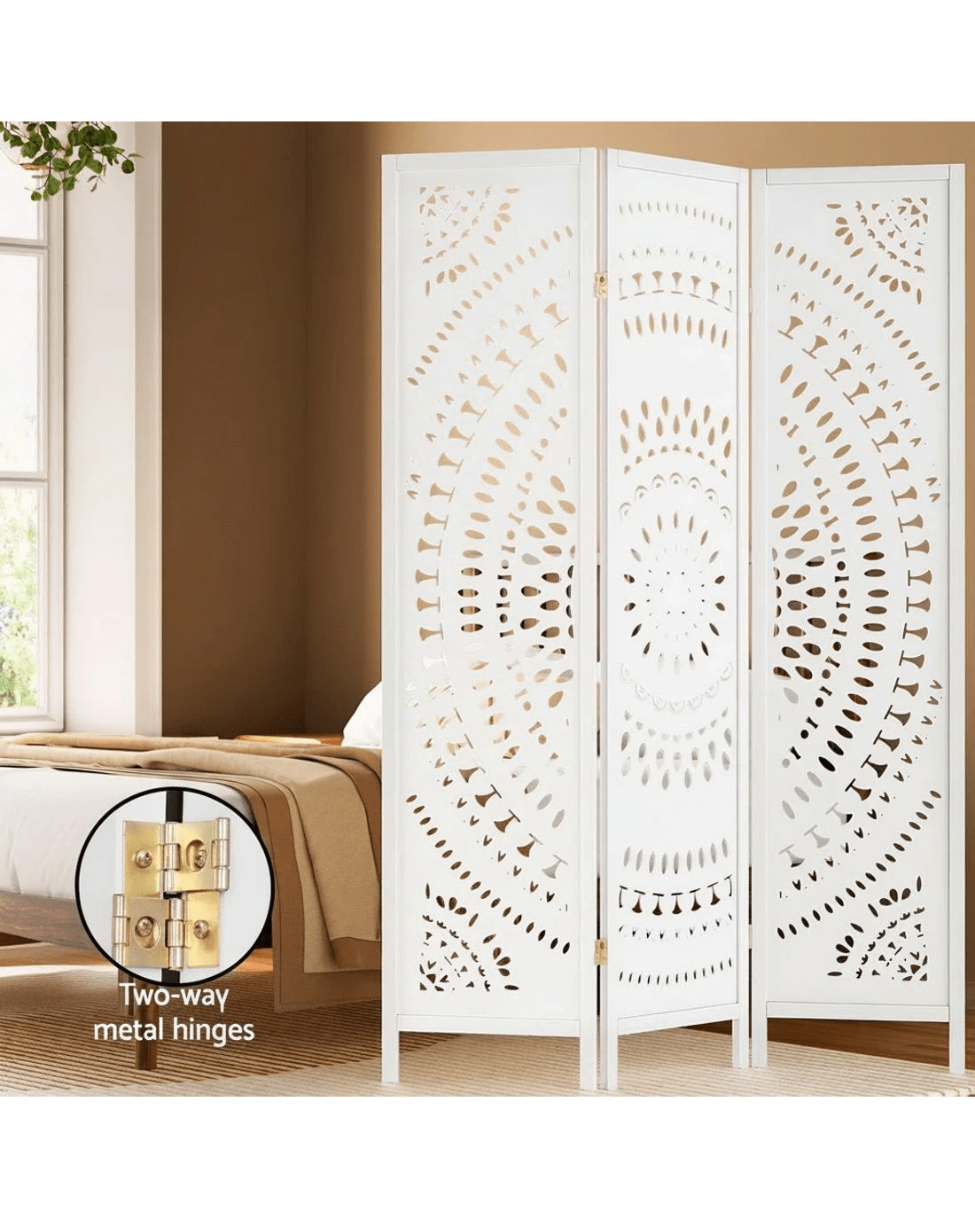 Experience refined versatility with our Artiss Room Divider. Crafted from pinewood and MDF, its dual-sided design complements both homes and offices. With durable two-way metal hinges and a foldable structure, it promises flexibility and space efficiency. Whether seeking privacy, decoration, or a subtle partition, it's the epitome of elegance tailored to your needs.
