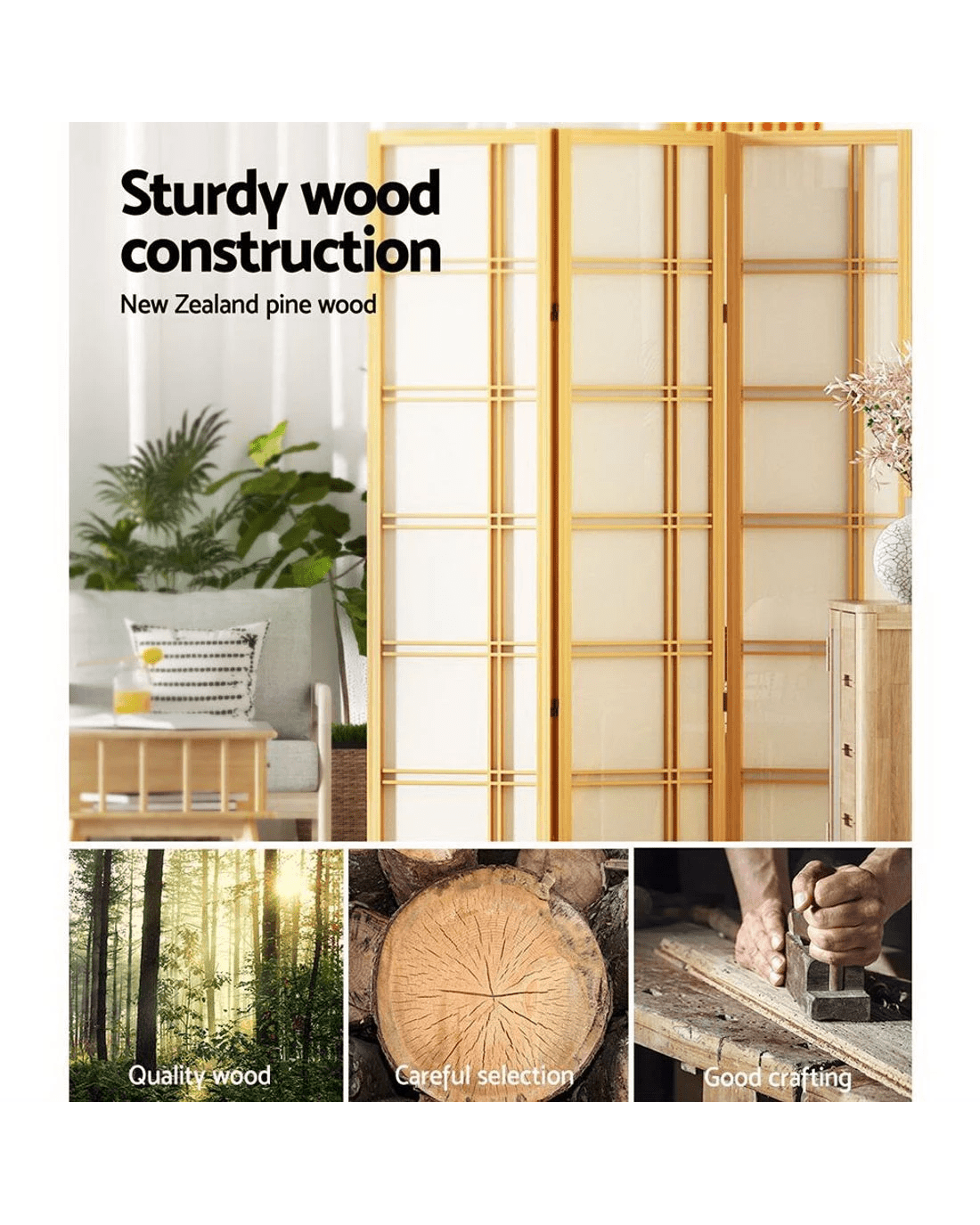 Need some privacy? Or want to make more practical use of space in your home? With our Artiss room dividers, you can create private pockets and zones or divide a large room into separate areas in minutes. It creates an illusion of different rooms without the need to add a solid wall. You can choose from our 3, 4, 6, or 8-panel room dividers in white, black, and natural wood tones. They feature solid pine wood construction with durable and breathable non-woven fabric, which ensures longlasting use. The room divider screen boasts eco-friendly and non-toxic paint that offers good resistance against cracks, fading, water, and corrosion. Additionally, its lightweight and portable design makes it easy to move from one room to another effortlessly. The panels of our room divider can also be folded, and the two-way metal hinges ensure sturdiness and ultimate stability. You can even assemble the panels easily. Purchase our room dividers and create a private area wherever you like.