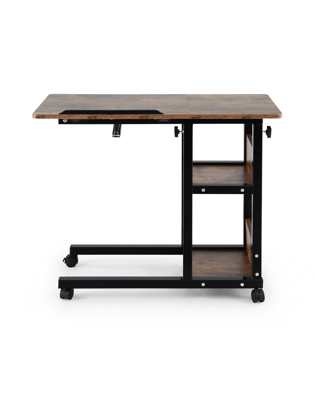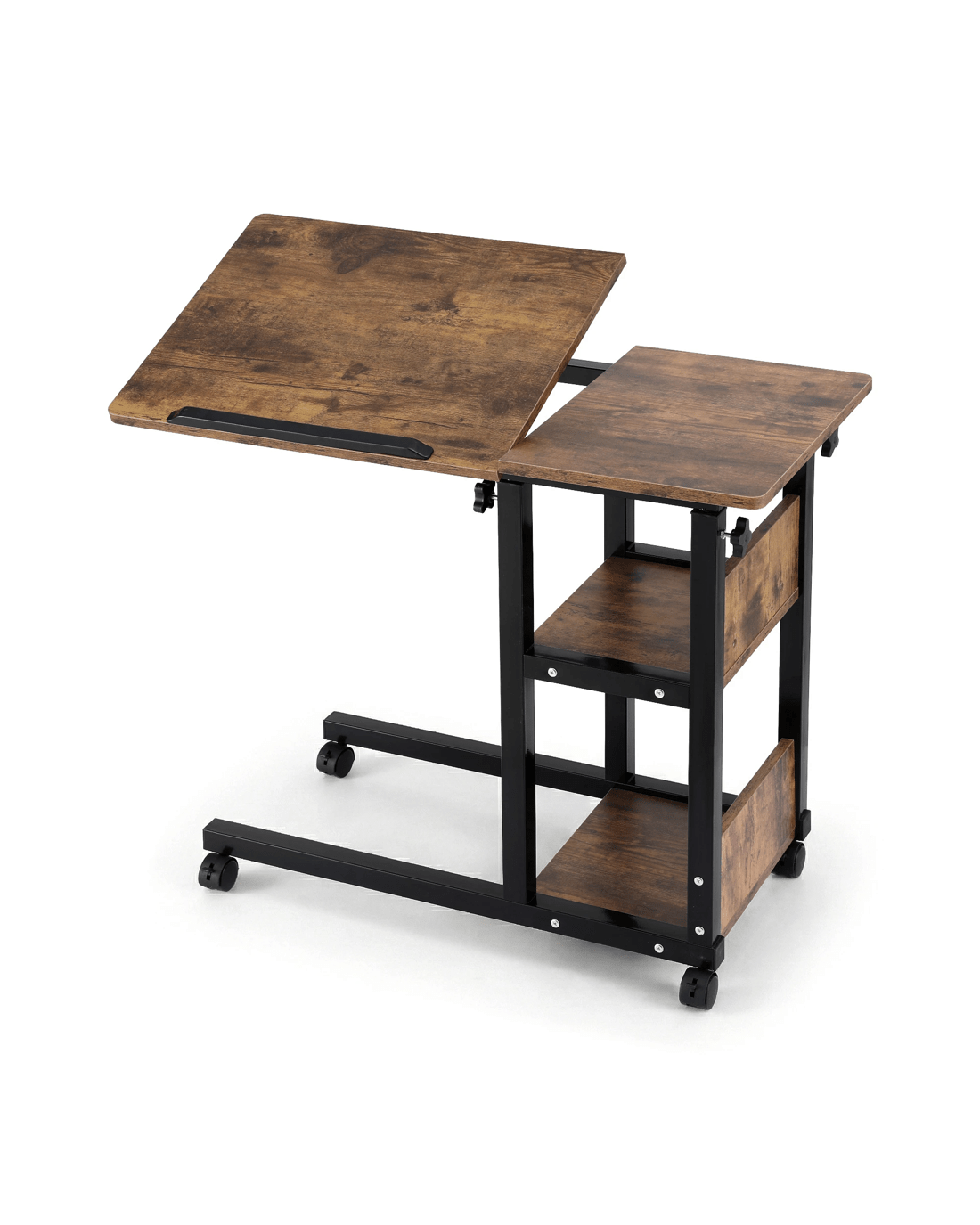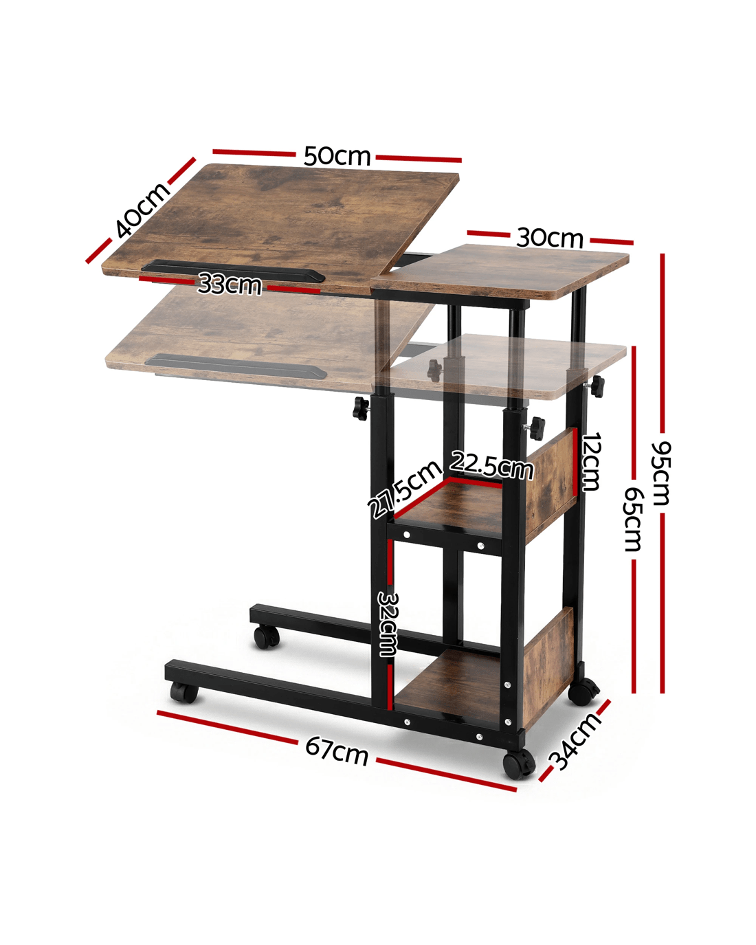 Transform your space with the Artiss adjustable laptop desk. This mobile workstation table serves as a handy overbed C shape desk. Featuring a tiltable sofa side table design, it offers flexible heights and storage. A versatile home office desk wheels solution in rustic brown.