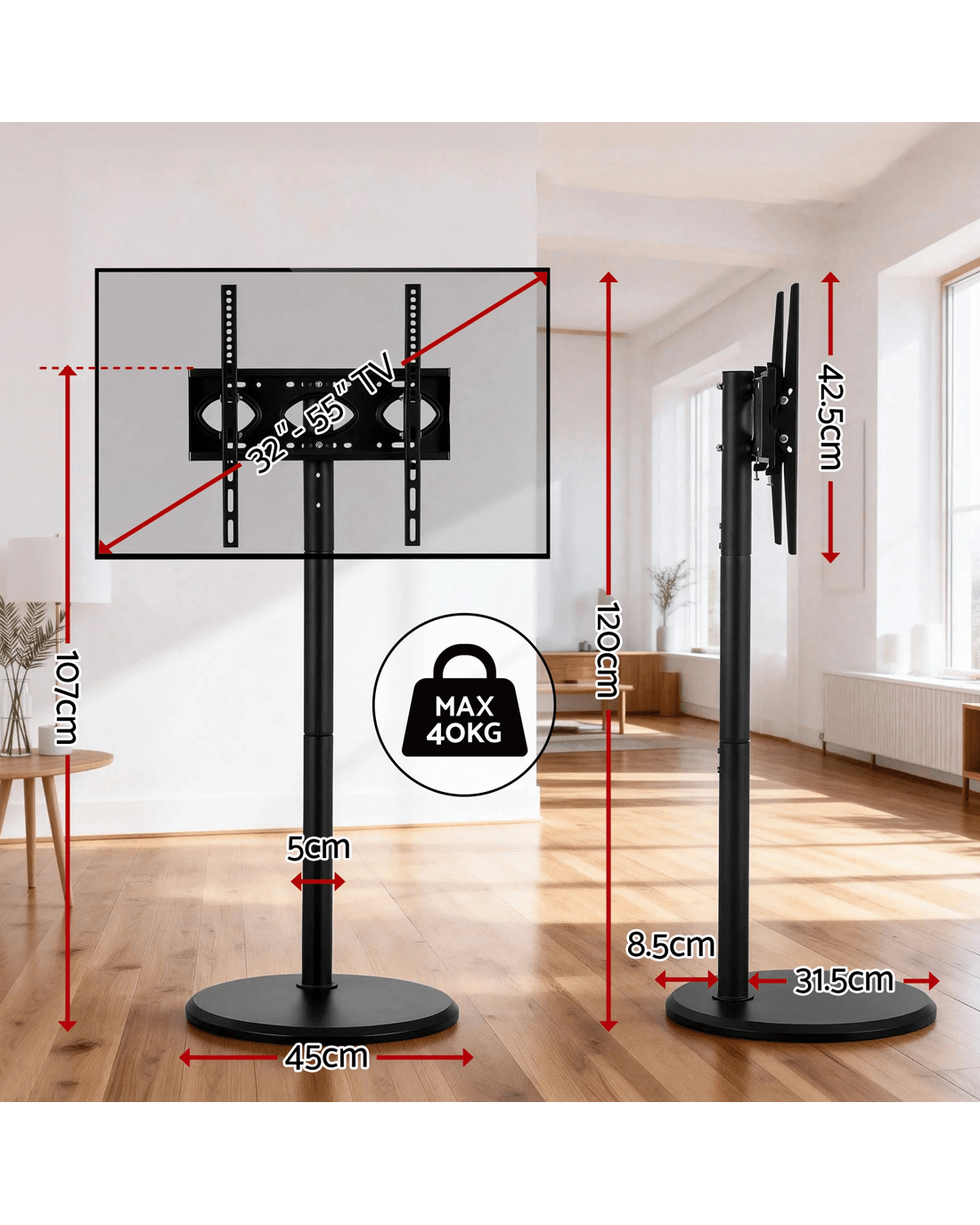 Upgrade your viewing experience with the Artiss Mobile TV Stand. Combining the sleek aesthetic of a wall mount with the flexibility of a portable cart, this stand is the perfect solution for homes and offices where drilling into walls isn't an option.Sleek Design, Hidden Motion Unlike industrial-looking carts, the Artiss stand features a stylish solid MDF base that hides five smooth casters. This allows you to roll your TV effortlessly from the bedroom to the living room while keeping a clean, furniture-like appearance.Customised Comfort Whether you are gaming or presenting, the adjustable height levels and ±15° tilt ensure the optimal viewing angle, free from glare. Supported by a robust steel frame, it securely holds TVs from 32 to 55 inches (VESA 100x100 to 400x400) and keeps cords tidy with integrated cable management.