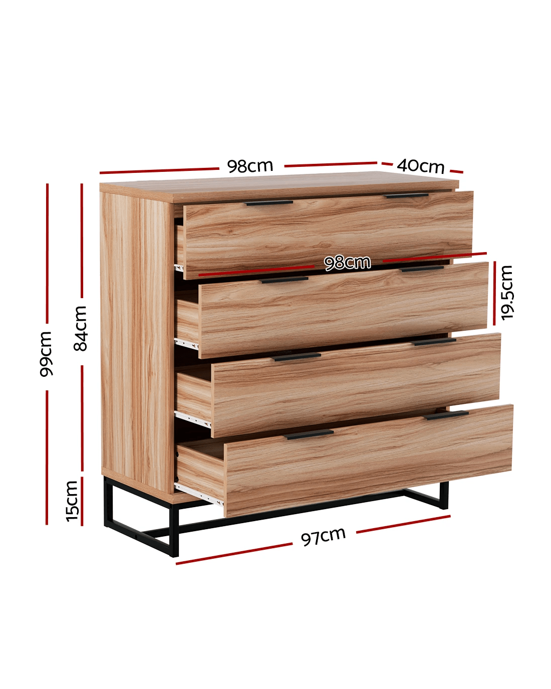 Introducing our Artiss Chest of Drawers. With four spacious drawers, each fitted with a smooth glide mechanism, it provides ample storage to keep your space organized and clutter-free. This chest of drawers, offering a blend of style and utility, is an unmissable addition to your furniture ensemble.