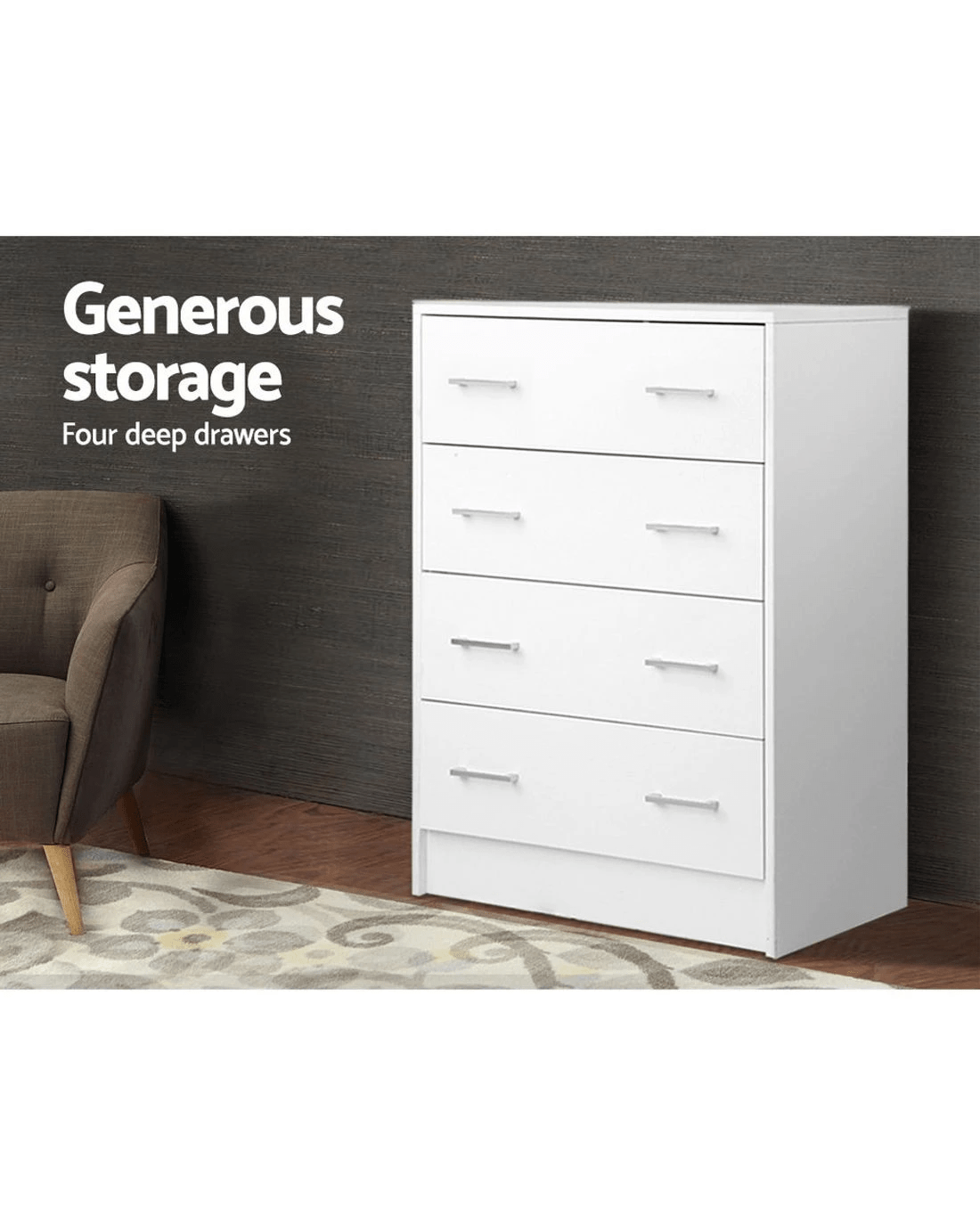 Artiss 4 Chest of Drawers - White