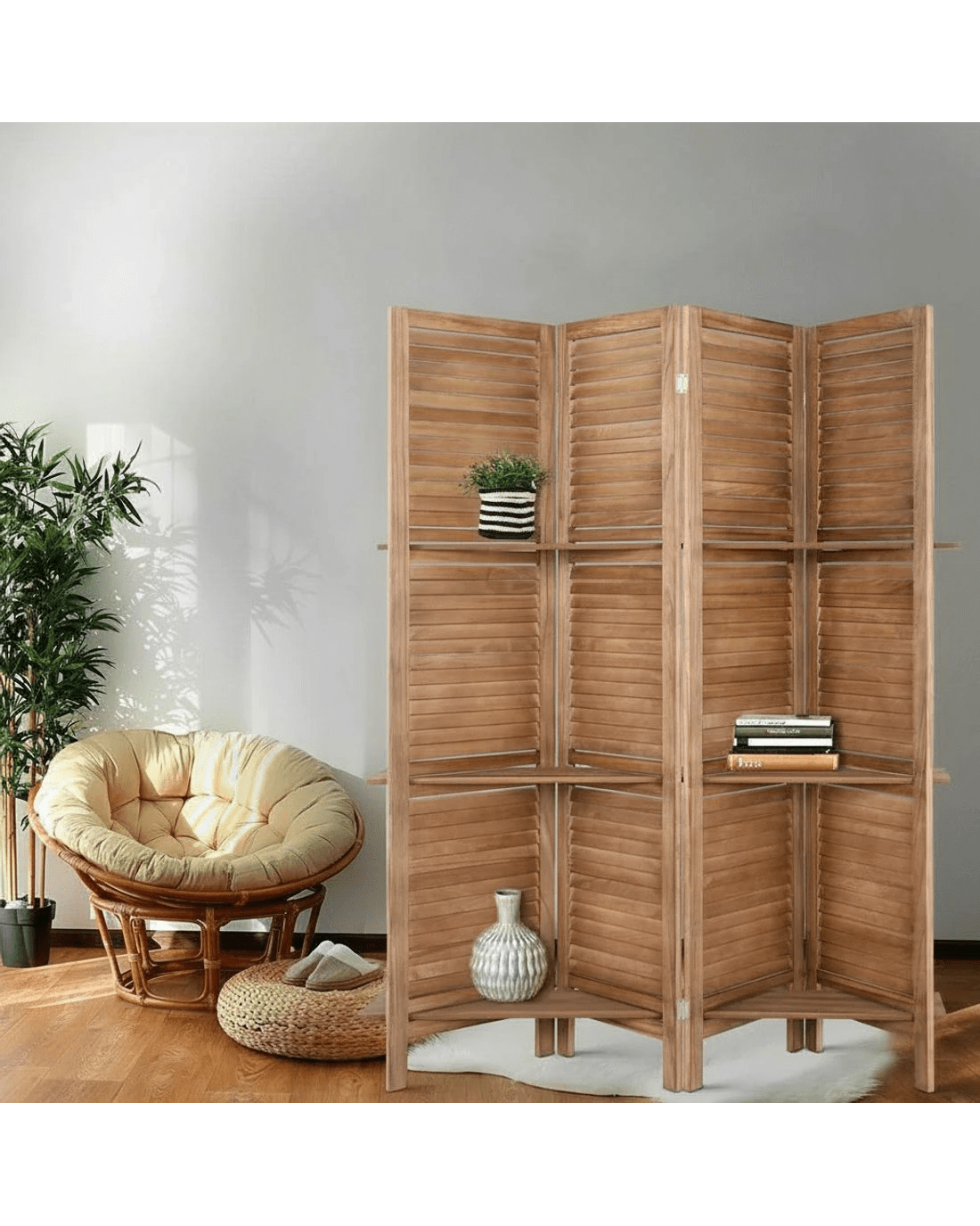 Sold by Aisle SixArtiss 4 Panel Room Divider Screen 163x170cm Shelf Oak - Brown