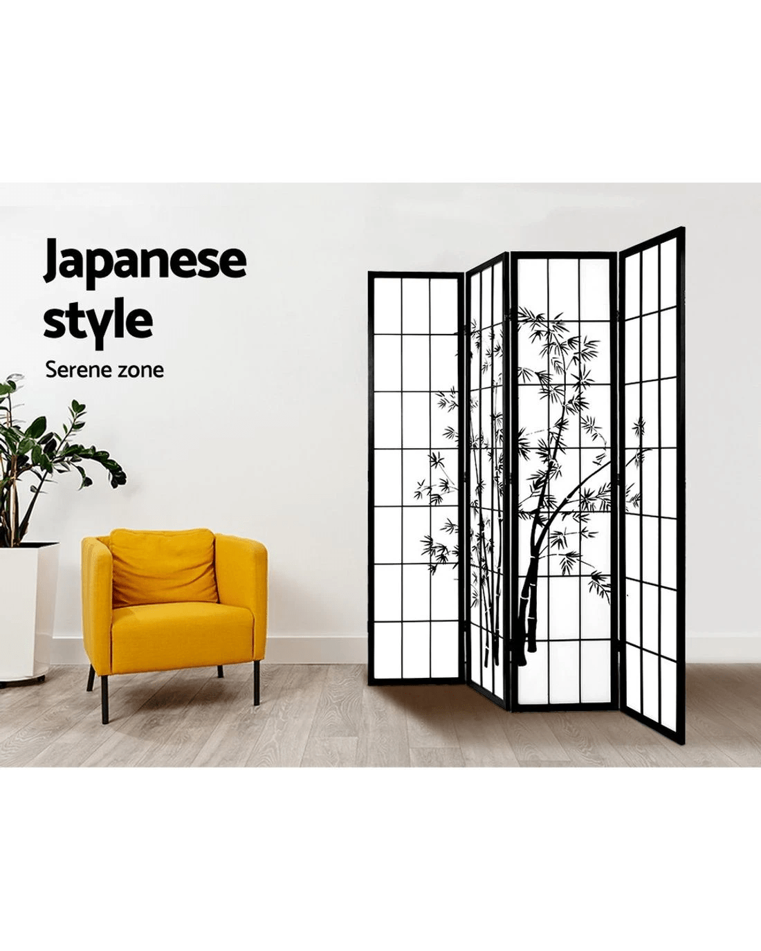 Sold by Aisle SixArtiss 4 Panel Room Divider Screen 174x179cm Bamboo - Black