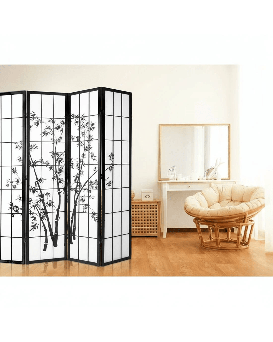 Need some privacy? Or more practical use of space in your home? Consider using our Shoji Bamboo Divider to create private pockets, zones or simply dividing a large room into separate areas top create new focus points. Designed with a touch of Japanese flair, our 4-panel room divider look good from any angle. The solid New Zealand pinewood construction and metal hinges ensure the lightweight divider is strong and sturdy to stand up to the task and easily manoeuvred to anywhere that needs it. The screen itself is made of non-woven fabric, eco-friendly and repels liquids with ease. When not in use, the room divider can be folded and store away for its next use.