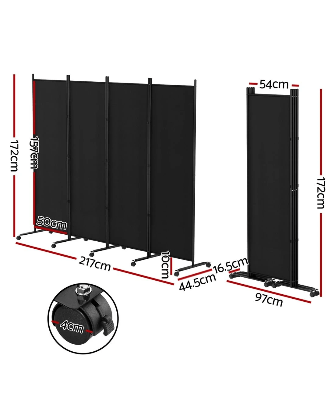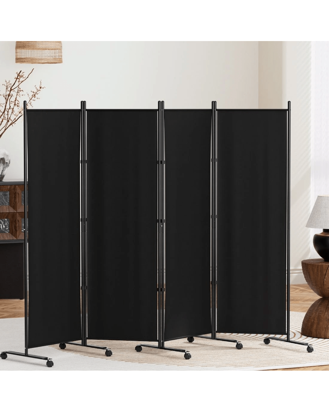 Sold by Aisle SixArtiss 4 Panel Room Divider Screen 217cm Fabric with Wheels Foldable Folding Metal Steel Frame Privacy Partition - black