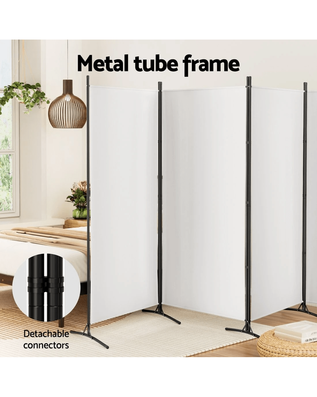 The Artiss Room Divider offers an ideal way to create private spaces within your home or office. Crafted from powder-coated metal tube construction, this room divider provides a sturdy and durable frame. Its foldable design ensures compact storage, making it easy to store when not in use. The detachable connectors give you the flexibility to adjust the divider's positioning to suit your space needs. Lightweight and portable, it can be moved effortlessly between rooms. While it offers privacy, please note that the panel does not block all light completely, providing a more subtle separation of spaces.