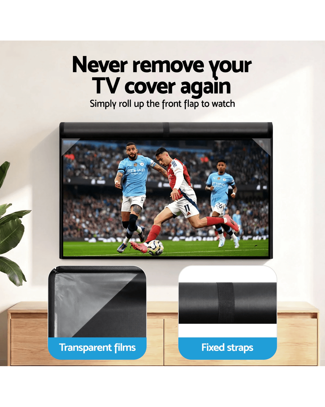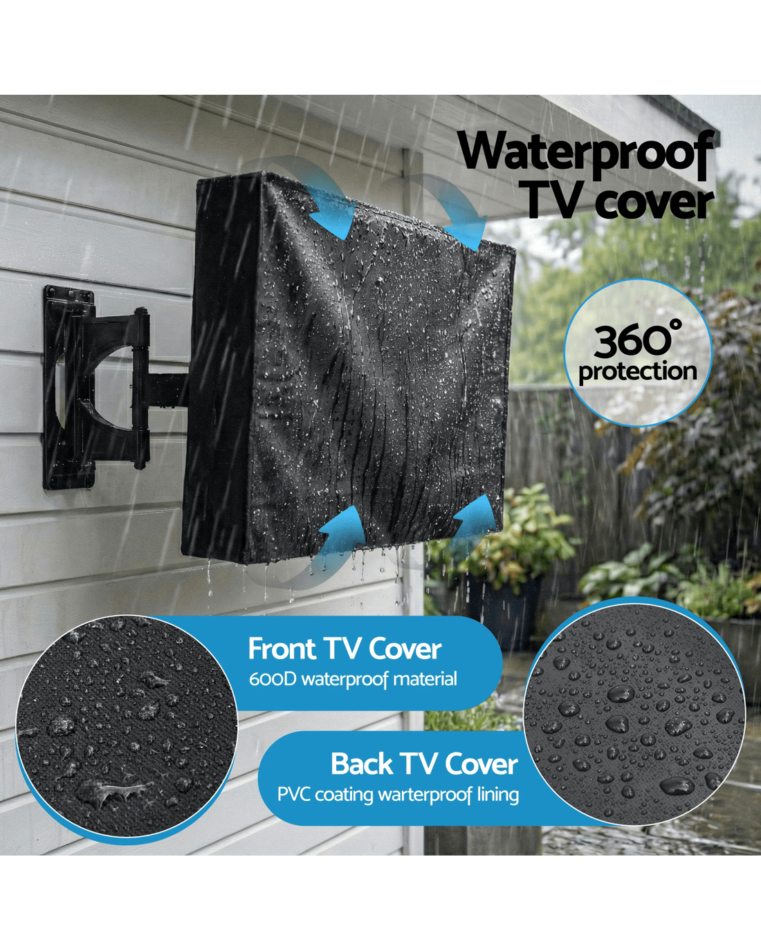 Safeguard your outdoor entertainment setup with the Artiss TV Cover, specifically engineered to provide robust protection for 40 to 43-inch televisions. Crafted from premium heavy-duty 600D Oxford cloth with a specialized waterproof PVC coating, this durable cover acts as a fortress against rain, snow, dust, dirt, and harsh UV rays, ensuring your screen remains pristine and functional in any season. Beyond just superior weatherproofing, the design prioritizes user convenience; featuring a smart half-covered front with easy zipper access, it allows you to flip the front flap and enjoy your favorite shows without the hassle of removing the entire unit. The cover ensures 360-degree full protection with adjustable Velcro straps that create a secure, custom fit around almost any wide mount or stand setup, effectively sealing out moisture and preventing scratches. Complete with a dedicated weather-resistant rear pocket for safe remote control storage, this versatile cover is the essential accessory for extending the lifespan of your television, whether placed on a patio, deck, or by the pool.