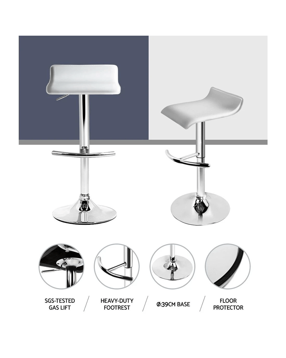 Featuring classic design and contemporary good looks, the bar stool is perfect for catchups with friends and makes a great addition to your kitchen. Upholstered in PU leather, the bar stool is available in white and black. You can choose the one that entices you the most or that suits your home décor. Plus, the bar stool is super comfy to seat, ensuring you have a good time, and its frame and design add a touch of class to its inherent charisma. Furthermore, the sturdy footrest ensures relaxed sitting while the omnidirectional seat makes for an easy turn to any facing, and you can also adjust the height with the SGS-tested gas lift. The bar stool also has a large metal base that ensures stability. Not least, a floor protector under the base helps to keep your pristine floor scratch-free.