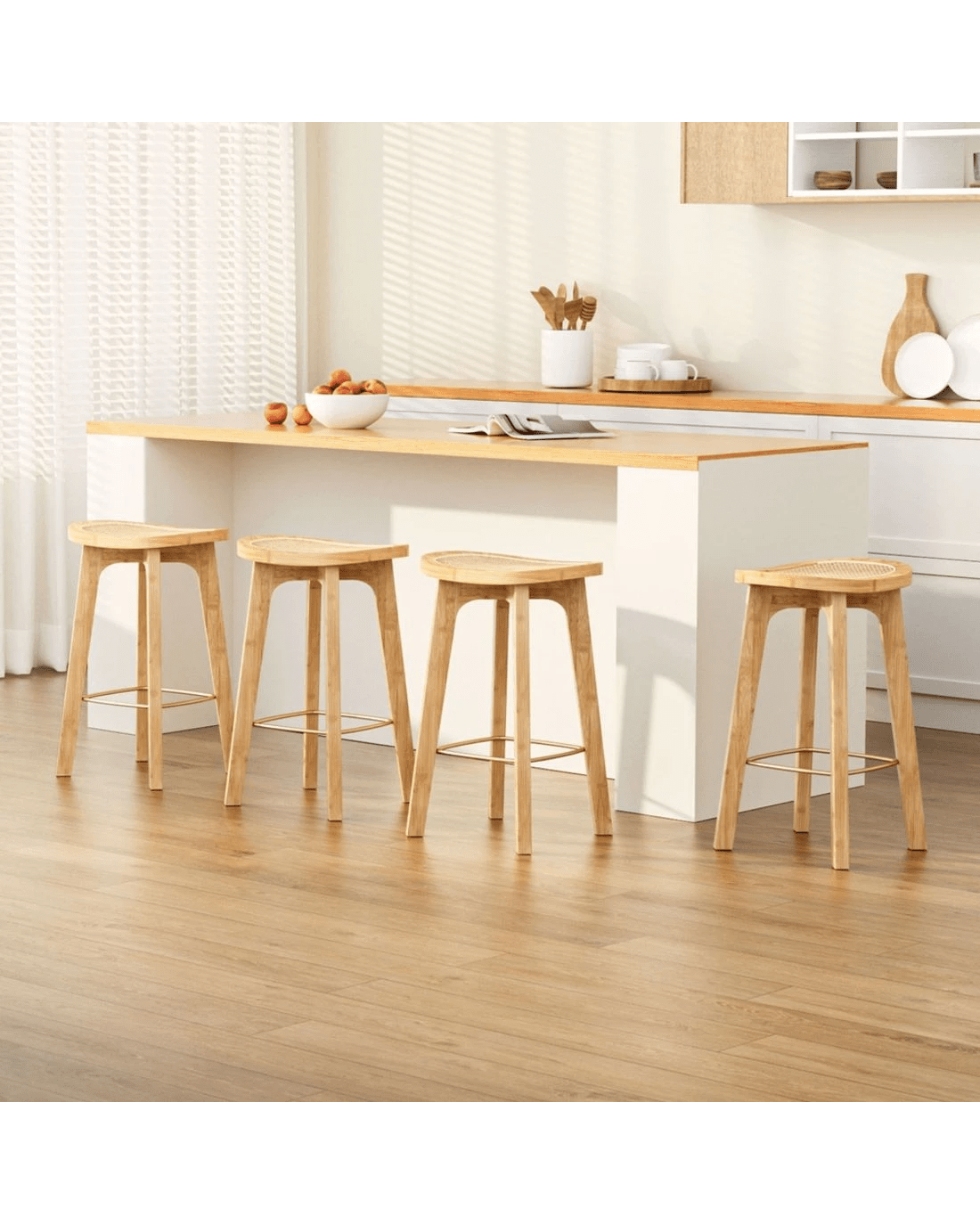 Sold by Aisle SixArtiss 4x Bar Stools Bamboo Rattan Stool Counter Chair Kitchen Barstools - Natural