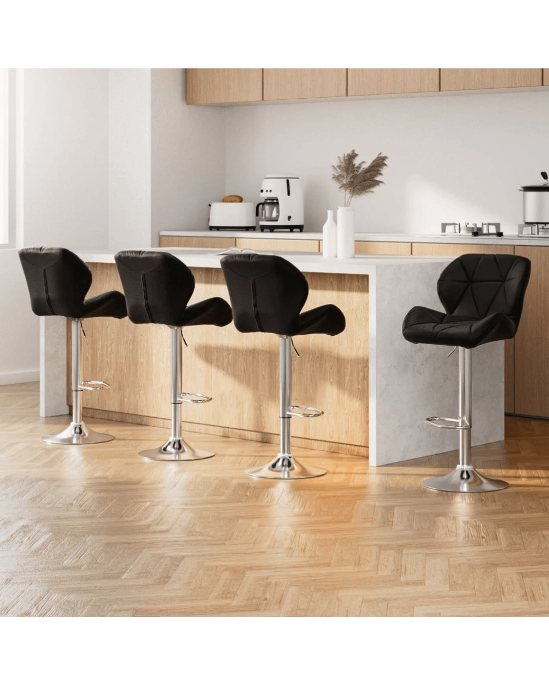 Sold by Aisle SixArtiss 4x Bar Stools Gas Lift Padded Leather - Black