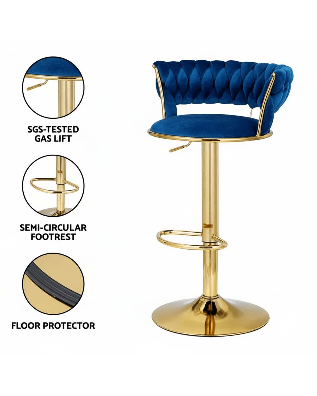 If you're looking to add an elegant and luxurious feel to your space? Artiss' Vivien bar stools with beautiful clam shell design are just perfect. They're great for catchups over coffee with friends, a jam session with the band, or daily living. Not an ordinary one but stands out in every aspect, whether it''s craftsmanship, style, upholstery, comfort, or quality that speaks for itself. It is something you would surely want to add to your space. You can style our Vivien bar stools anywhere, from living rooms to kitchen and the bar section, they will effortlessly fuse in any décor and lend an elegant and luxurious feel to your space. Featuring inner solid wood construction with plush velvet upholstery and a hand-woven backrest that ensures lasting quality, our bar stools have soft padded seats, solid semi-circular footrest, sturdy powder-coated steel pedestal base, SGS-tested gas lift for height adjustment, and floor protectors for ultimate stability and scratch-free floors. They also feature 360˚ rotatable seat so you can face any direction for ease of conversing with guests and family. Our Vivien bar stools make a timeless piece of furniture, and with four colour options, you can choose that best complements your space and suits your taste. Artiss' Vivien bar stools would make a luxurious addition to your space. Shop them today!