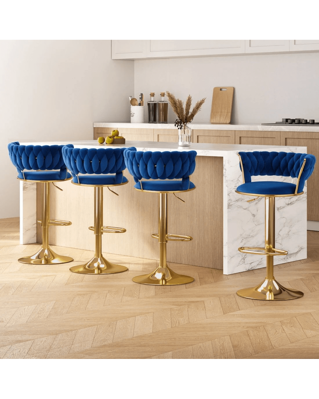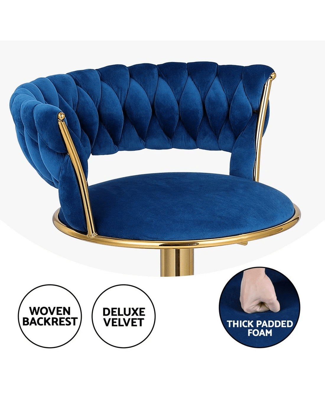Sold by Aisle SixArtiss 4x Bar Stools Gas Lift Velvet Woven Backrest Navy - Blue