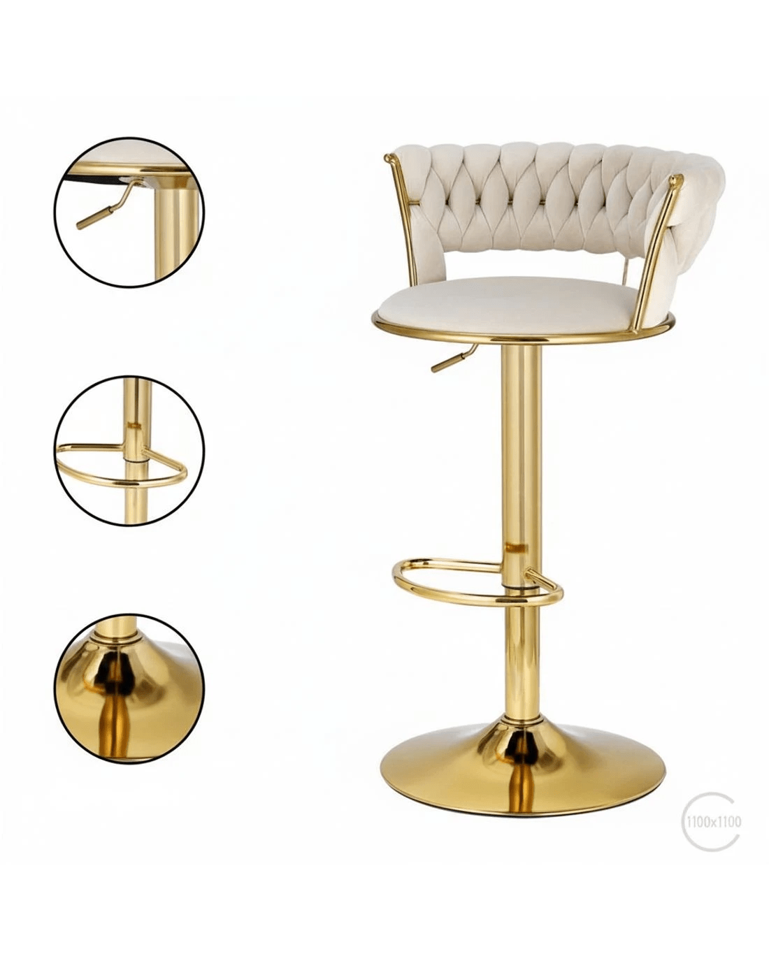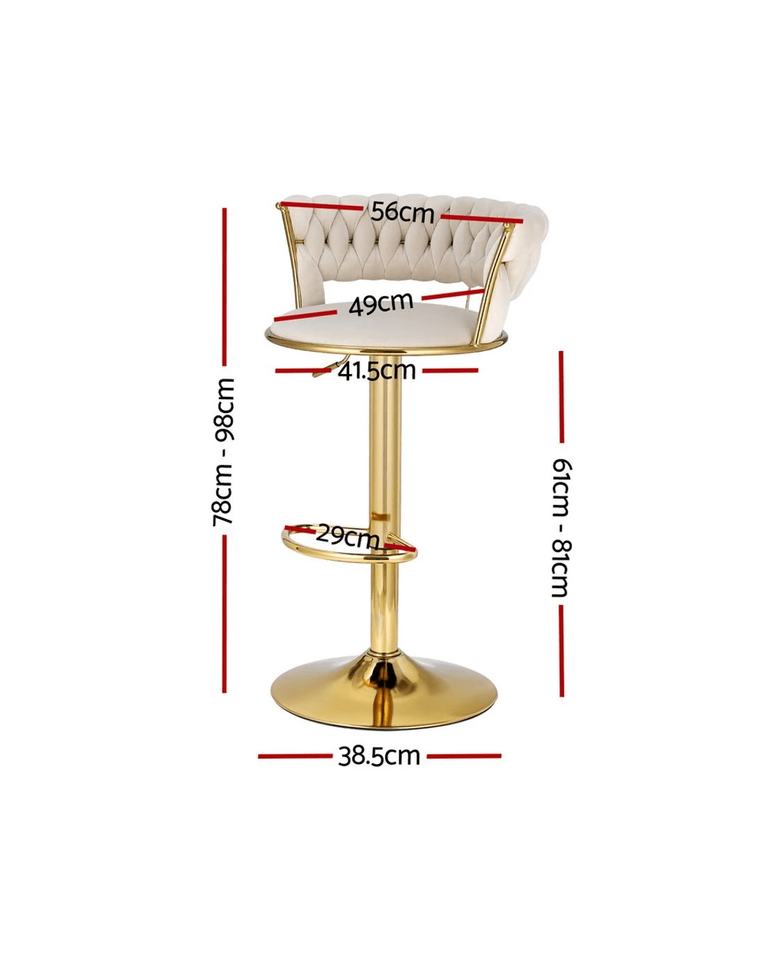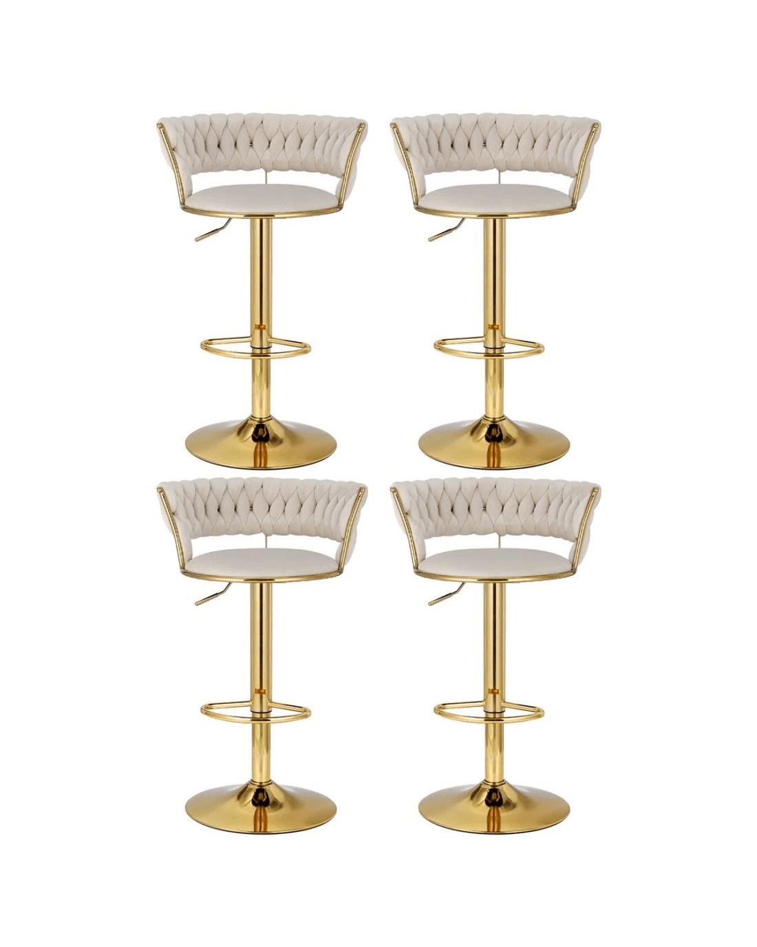 Sold by Aisle SixArtiss 4x Bar Stools Gas Lift Velvet Woven Backrest Ivory - Beige